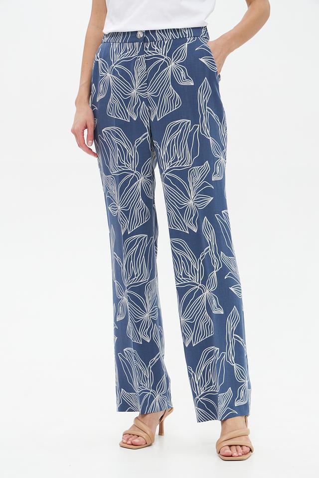 Женские брюки Toni collection синего цвета с оригинальным цветочным принтом. Изготовлены из 100% луоселла, обеспечивающего комфорт и лёгкость в носке. Идеальный выбор для создания стильного и непринуждённого образа. Состав: луоселл 100%