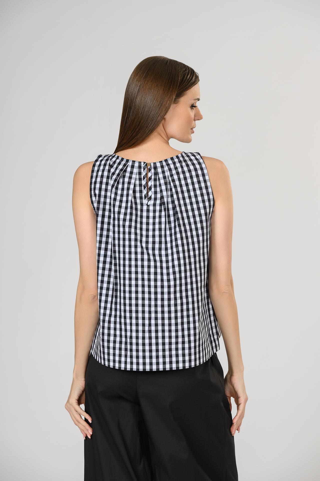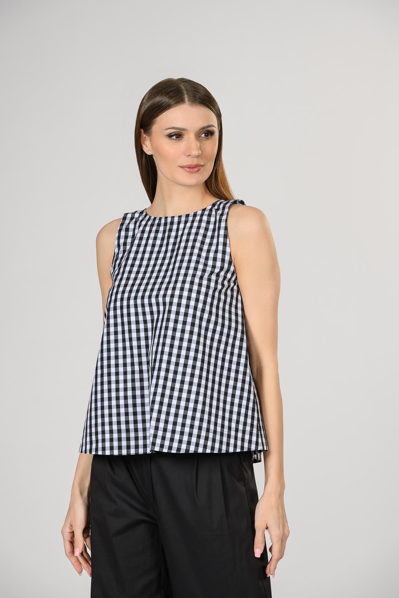 Этот стильный топ от i Blues станет прекрасным дополнением к вашему гардеробу. Выполненный из 100% хлопка, он обеспечит комфорт и легкость в течение всего дня. Универсальный черно-белый принт в клетку делает топ актуальным для различных образов. Классический крой и безупречное качество исполнения подчеркнут ваш изысканный вкус.