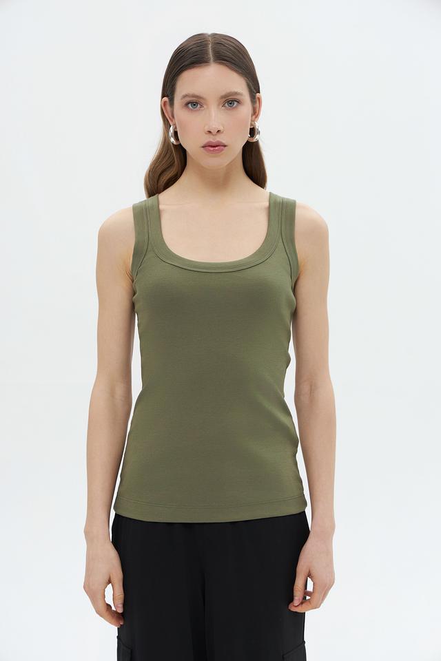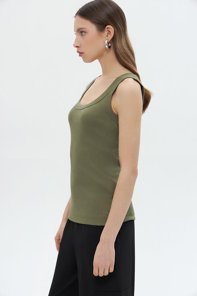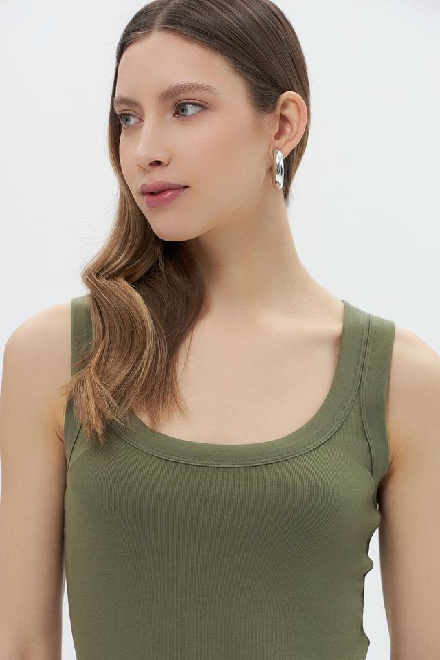 Цвет топа – хаки, универсальный и легко сочетаемый с другими элементами гардероба. Он отлично подойдет для создания как повседневных, так и более элегантных образов.