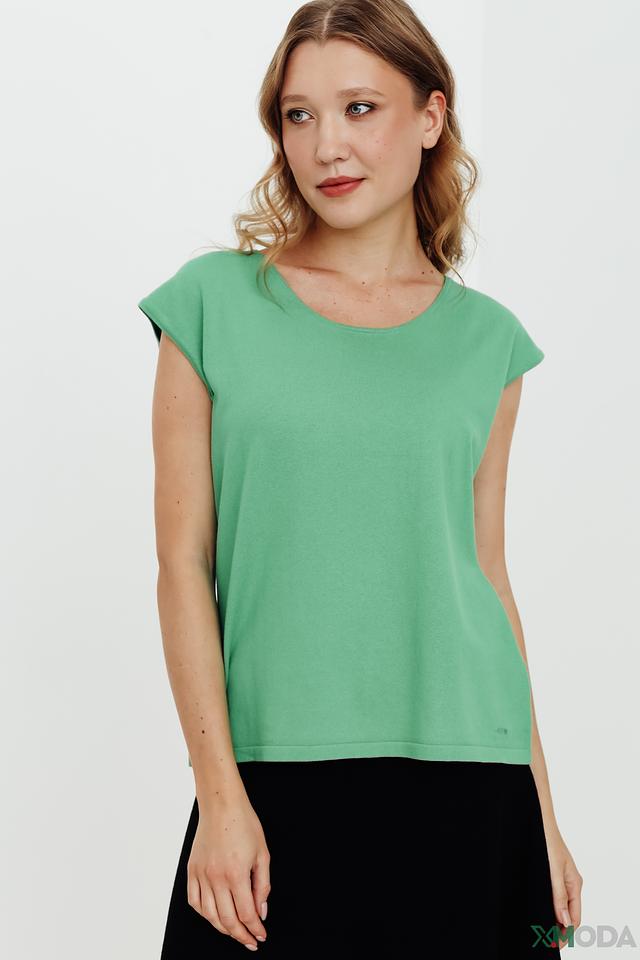 Топ от Oui мятного цвета с короткими рукавами и округлым вырезом. Изготовлен из мягкого хлопка с добавлением полиамида для большей износостойкости. Стильный и комфортный выбор для повседневного гардероба. Состав: хлопок 80%, полиамид 20%