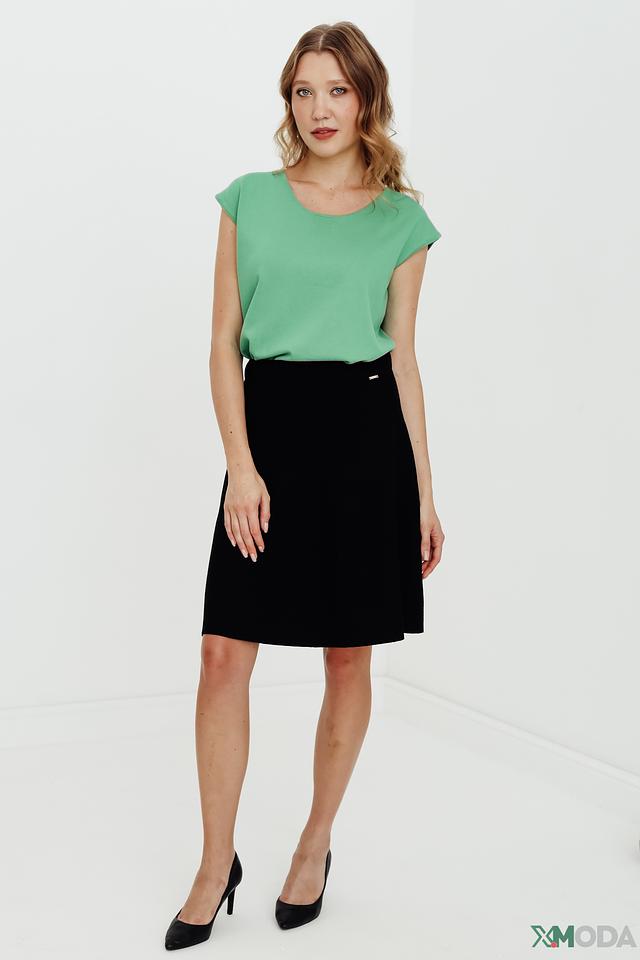 Топ имеет прямой крой, округлый вырез горловины и короткие рукава с небольшим отворотом. Благодаря сочетанию хлопка и полиамида, изделие приятное на ощупь, хорошо держит форму и прослужит вам долгое время.