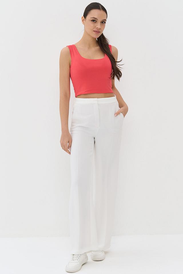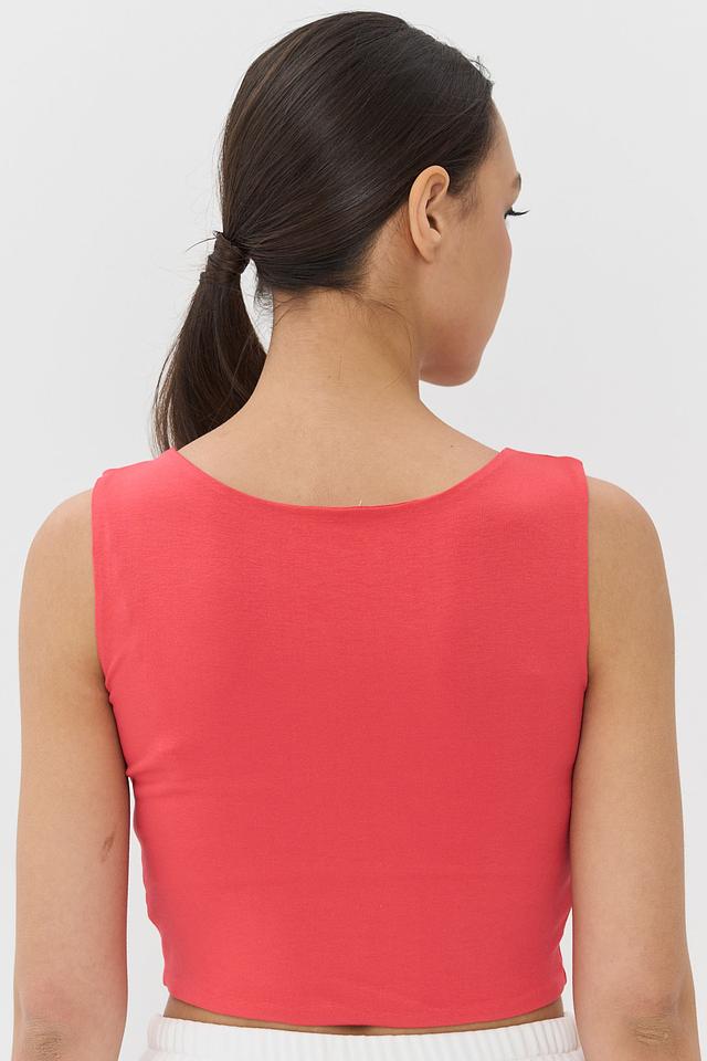 Топ имеет прямой крой и короткую длину, что делает его идеальным для летних дней и создания модных луков. Благодаря составу из 95% вискозы и 5% эластана, он приятен к телу, хорошо тянется и не сковывает движений.