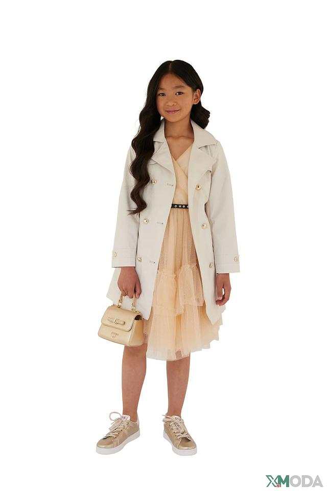 Этот очаровательный плащ от Guess станет прекрасным дополнением к гардеробу юной модницы. Выполненный в нежном бежевом цвете, он идеально подходит для создания стильных и элегантных образов.