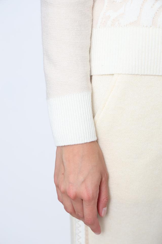 Этот стильный джемпер от Tricot Chic станет прекрасным дополнением к вашему гардеробу. Он выполнен в нежном бежевом цвете и украшен выразительным узором, который придает ему изысканность.