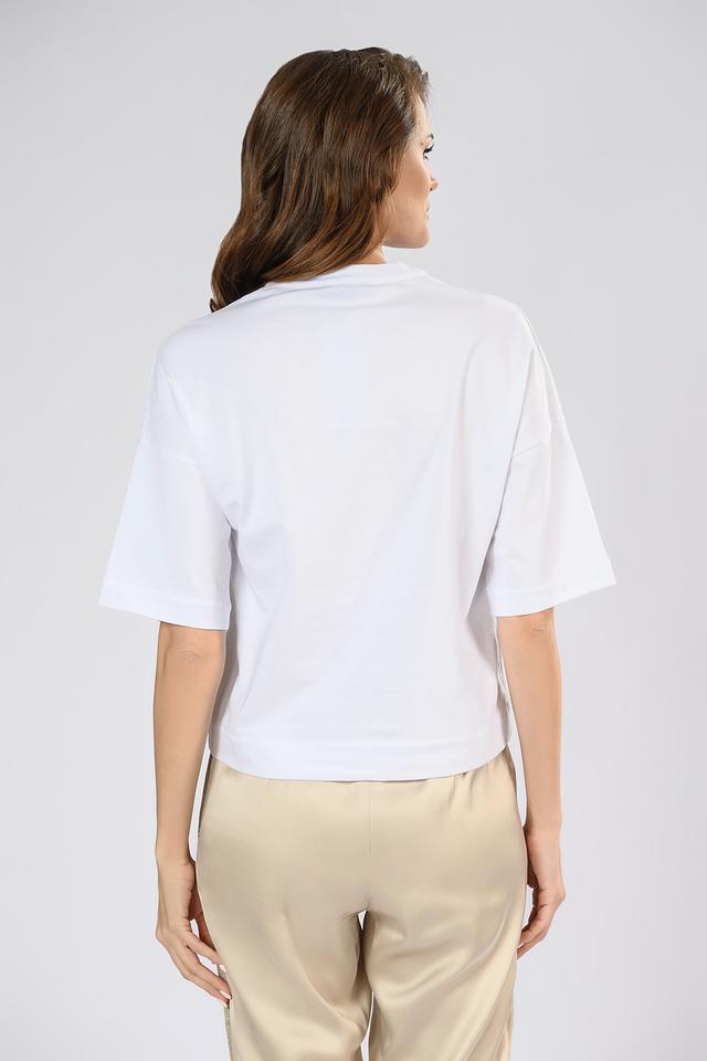 Фасон футболки – свободный, слегка заниженная линия плеч, что придает ей современный и расслабленный вид. Короткие рукава делают ее идеальным выбором для теплой погоды. Эта футболка отлично сочетается с джинсами, шортами, юбками и брюками, позволяя создавать разнообразные образы.
