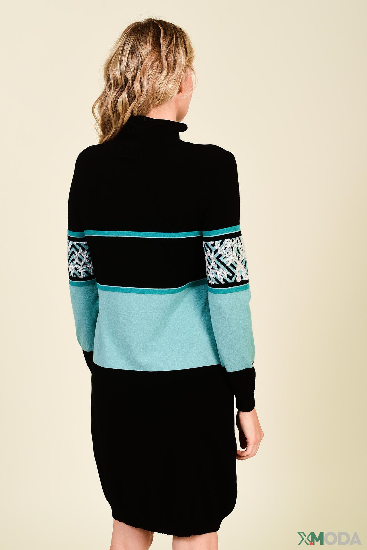 Элегантное трикотажное платье от Tricot Chic – идеальный выбор для создания стильного зимнего образа. Модель выполнена в классическом черном цвете, дополненном эффектной горизонтальной полосой с геометрическим узором и аквамариновыми вставками. Высокий воротник-гольф и приталенный силуэт подчеркнут достоинства фигуры, а мягкая, приятная к телу ткань обеспечит комфорт в течение всего дня. Это платье прекрасно подойдет как для повседневных выходов, так и для особых случаев.