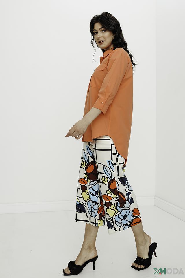 Эти брюки от Tricot Chic станут ярким акцентом вашего гардероба. Модель выполнена в белом цвете и украшена эффектным цветочным принтом, сочетающим в себе оттенки синего, оранжевого, красного и жёлтого.