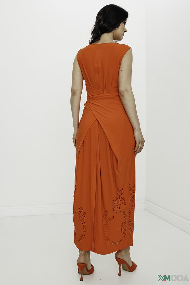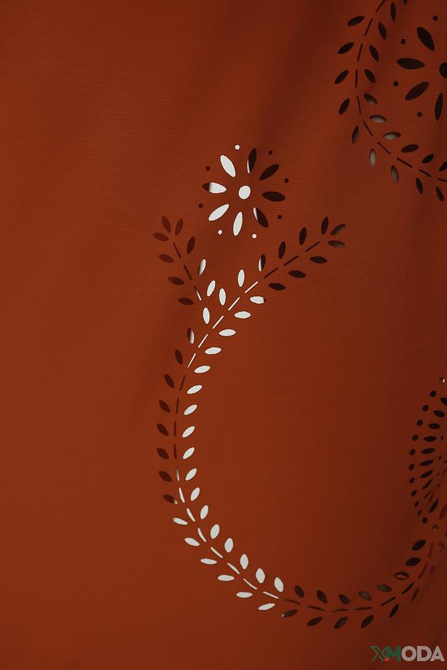 Платье имеет приталенный силуэт, подчеркивающий фигуру, и длину миди. Яркий алый цвет делает его заметным и привлекательным. Особый акцент – это декоративные вырезы в области лифа и юбки, добавляющие платью изысканности и оригинальности.