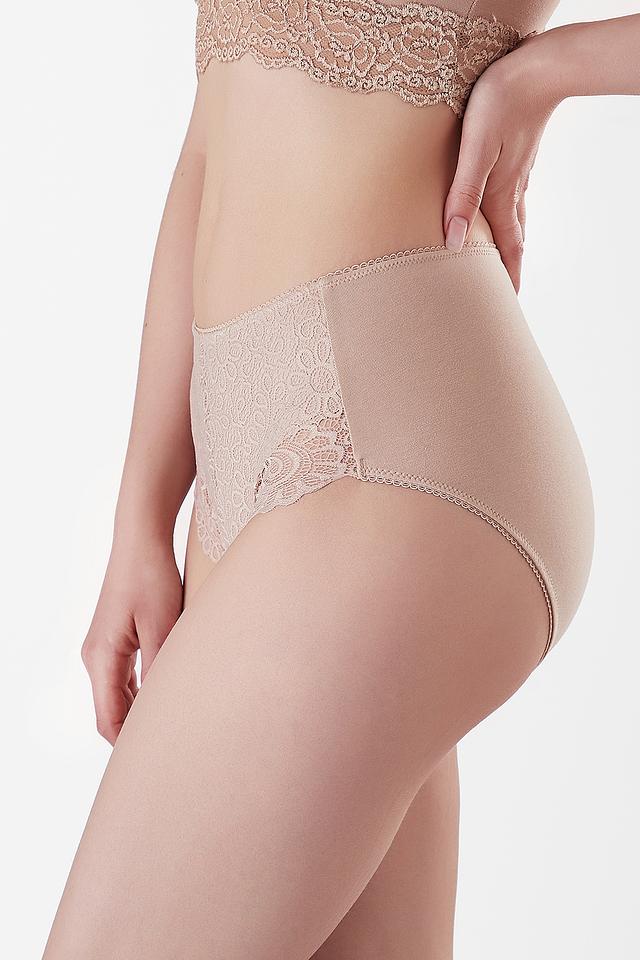 Трусы от Lowry бежевого цвета с изящным кружевным декором. Модель выполнена из мягкого хлопка с добавлением эластана для комфортной посадки и свободы движений. Состав: хлопок 95%, лайкра 5%