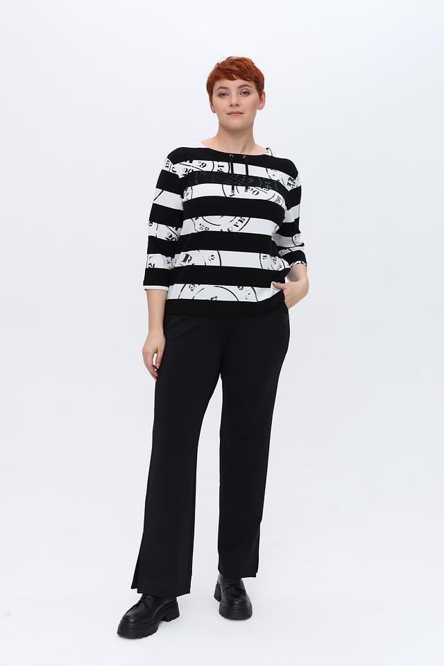 Брюки имеют прямой крой, который визуально вытягивает силуэт и обеспечивает комфортную посадку. Оригинальный дизайн дополняют разрезы по бокам, придающие образу динамичность и лёгкость.
