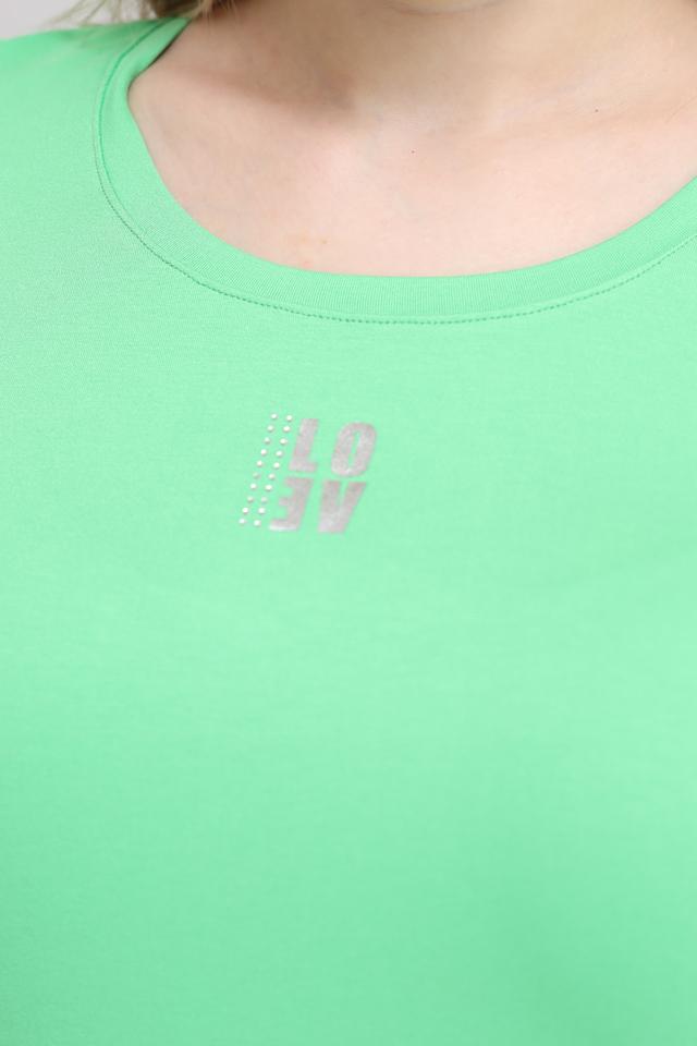 Женская футболка Tuzzi лаймового цвета с небольшим логотипом на груди. Изготовлена из мягкой вискозы с добавлением эластана для комфортной посадки и свободы движений. Состав: вискоза 95%, эластан 5%