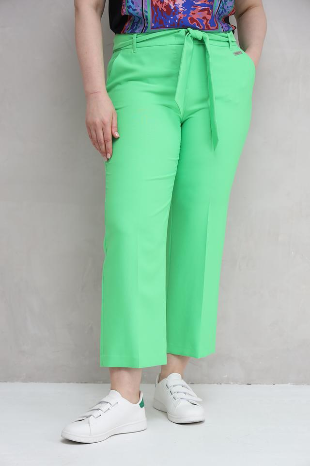 Женские брюки Tuzzi лаймового цвета — стильная модель с завышенной талией и декоративным поясом-завязкой. Брюки прямого кроя, с прорезными карманами и аккуратными складками спереди. Состав: полиэстер 84%, эластан 16%