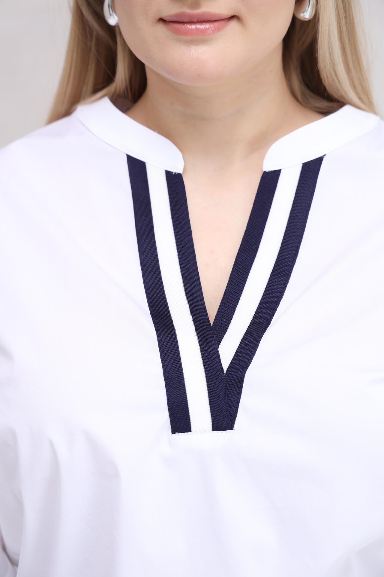 Блуза Tuzzi белая с темно-синей отделкой и декором