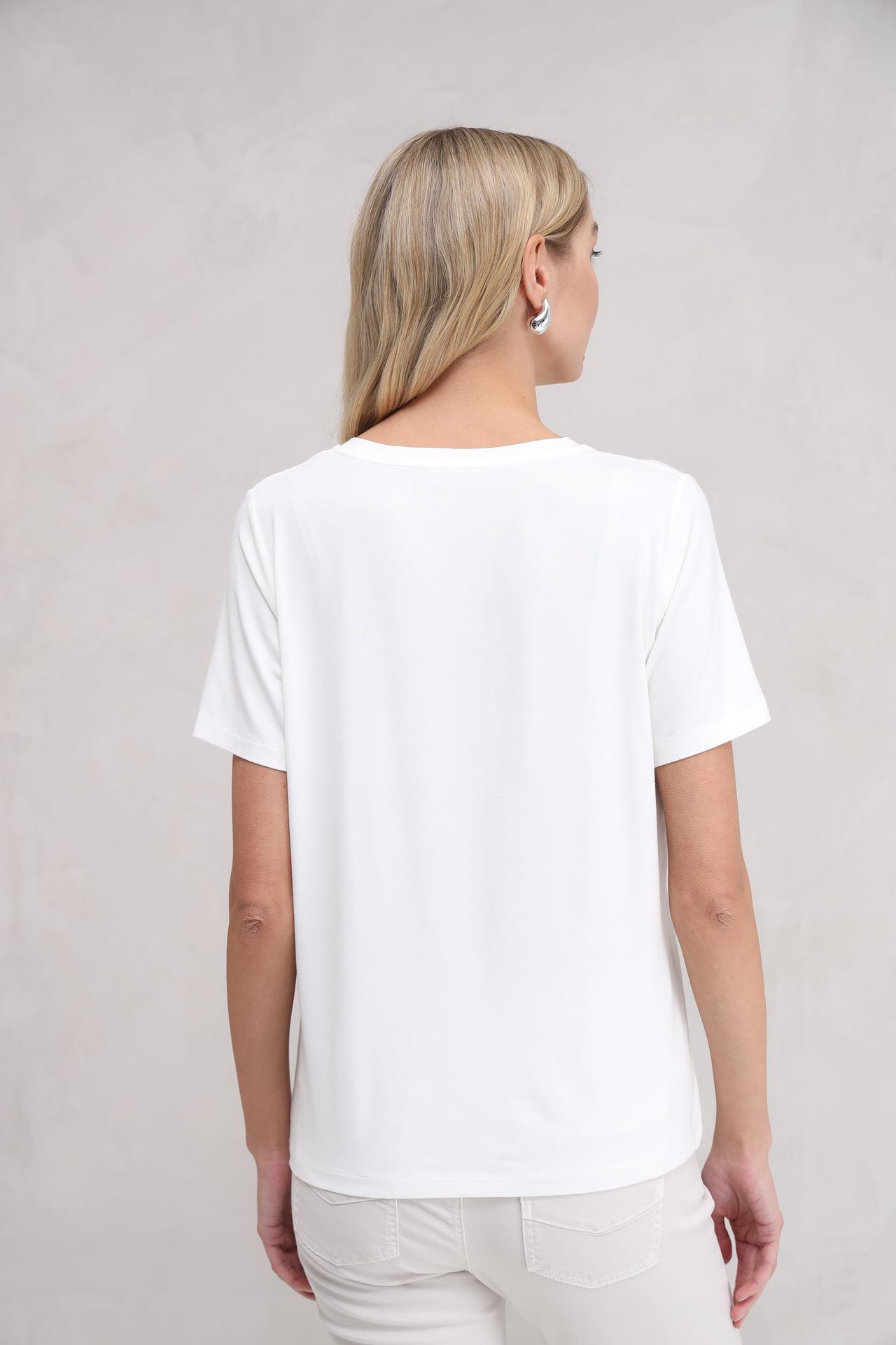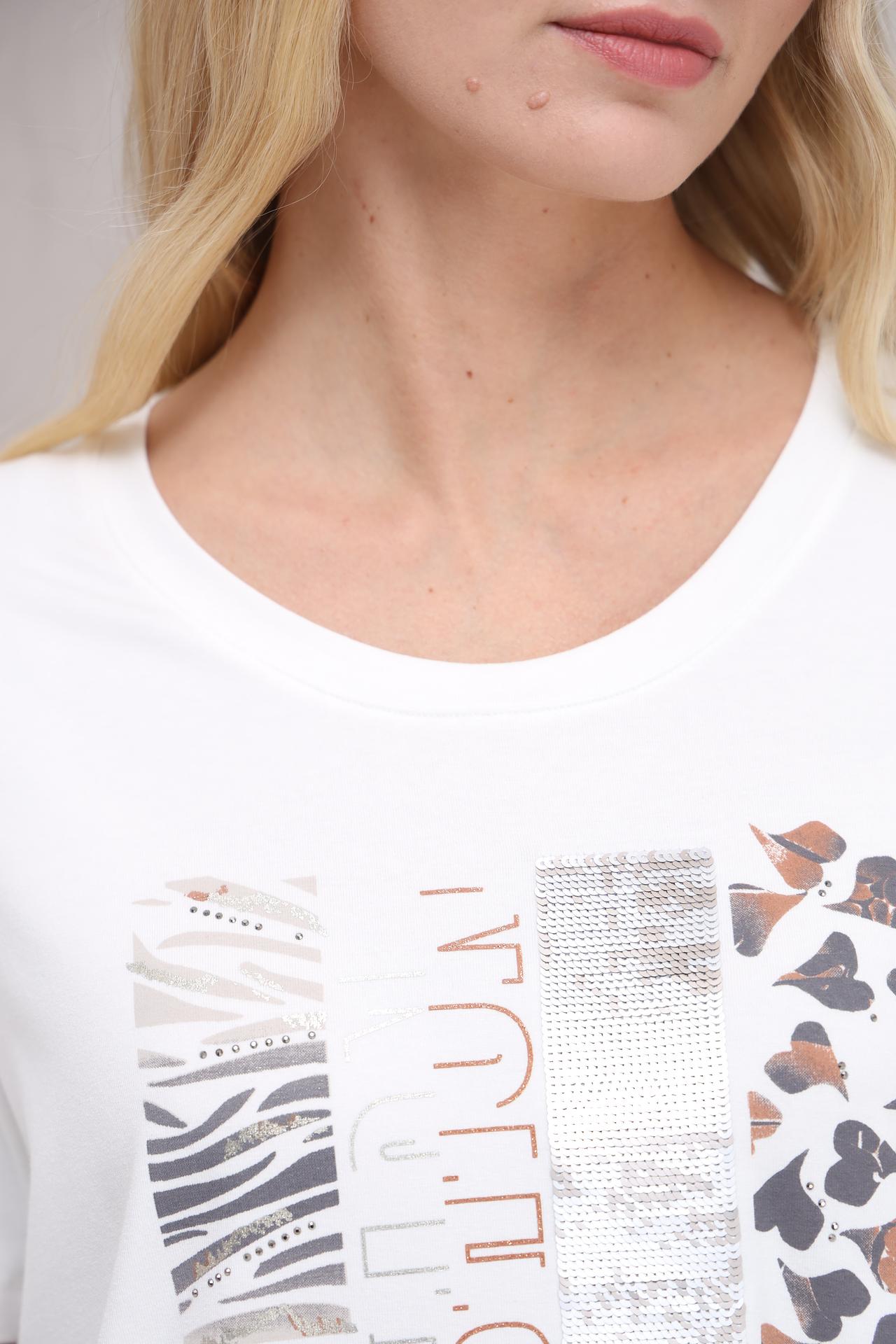 Элегантная белая футболка от Tuzzi, выполненная из мягкой и приятной к телу вискозы с добавлением эластана, обеспечит комфорт и свободу движений. Идеальный выбор для создания стильных и женственных образов на каждый день. Футболка женская Tuzzi – это сочетание качества и современного дизайна.