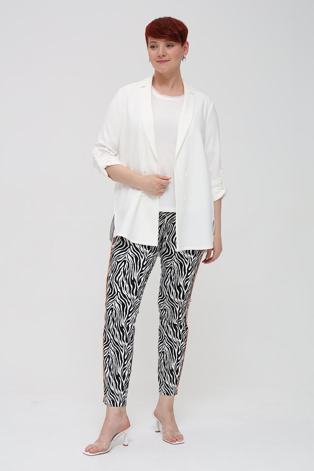 Оригинальный дизайн с принтом "зебра" и оранжевая декоративная полоса по бокам делают эти джинсы ярким акцентом в вашем гардеробе. Они идеально подойдут для создания модных и запоминающихся образов. Джинсы Tuzzi – это сочетание стиля, комфорта и качества.