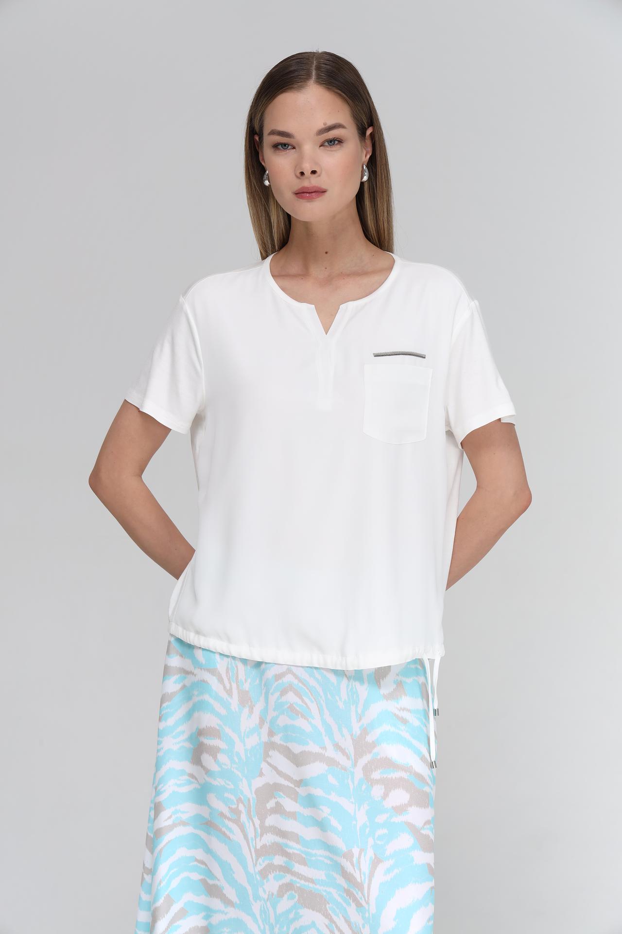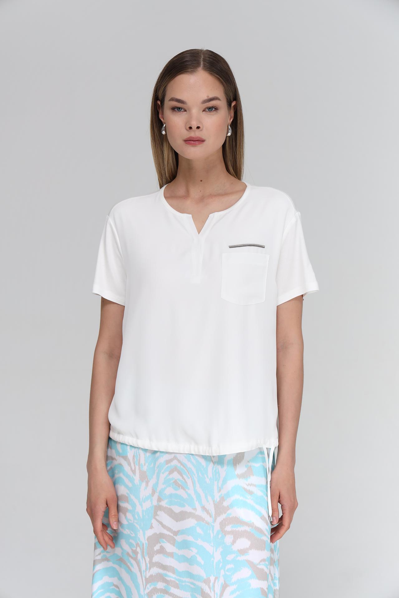 Элегантная блуза от Tuzzi – это воплощение комфорта и стиля. Изготовленная из мягкой и приятной к телу ткани (93% вискоза, 7% эластан), эта блуза идеально подходит для создания повседневных образов с акцентом на изысканность. Блуза женская имеет свободный крой и V-образный вырез, что обеспечивает удобство и свободу движений. Лаконичный дизайн дополнен небольшим нагрудным карманом с декоративной отделкой и кулиской по низу, позволяющей регулировать силуэт.