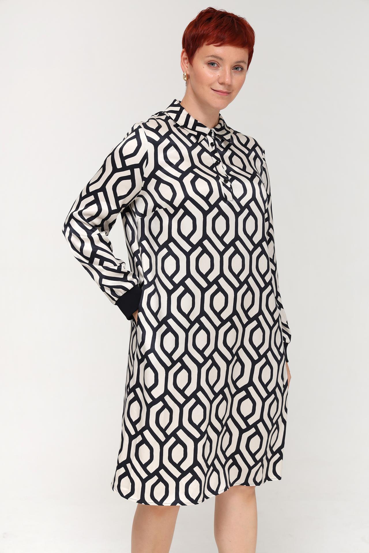 Элегантное платье рубашечного кроя от Tuzzi. Сочетание классического силуэта и современного геометрического принта делает эту модель идеальным выбором для создания стильного и запоминающегося образа. Мягкая и приятная на ощупь ткань из вискозы и купро обеспечивает комфорт в течение всего дня. Это платье станет незаменимой вещью в вашем гардеробе.