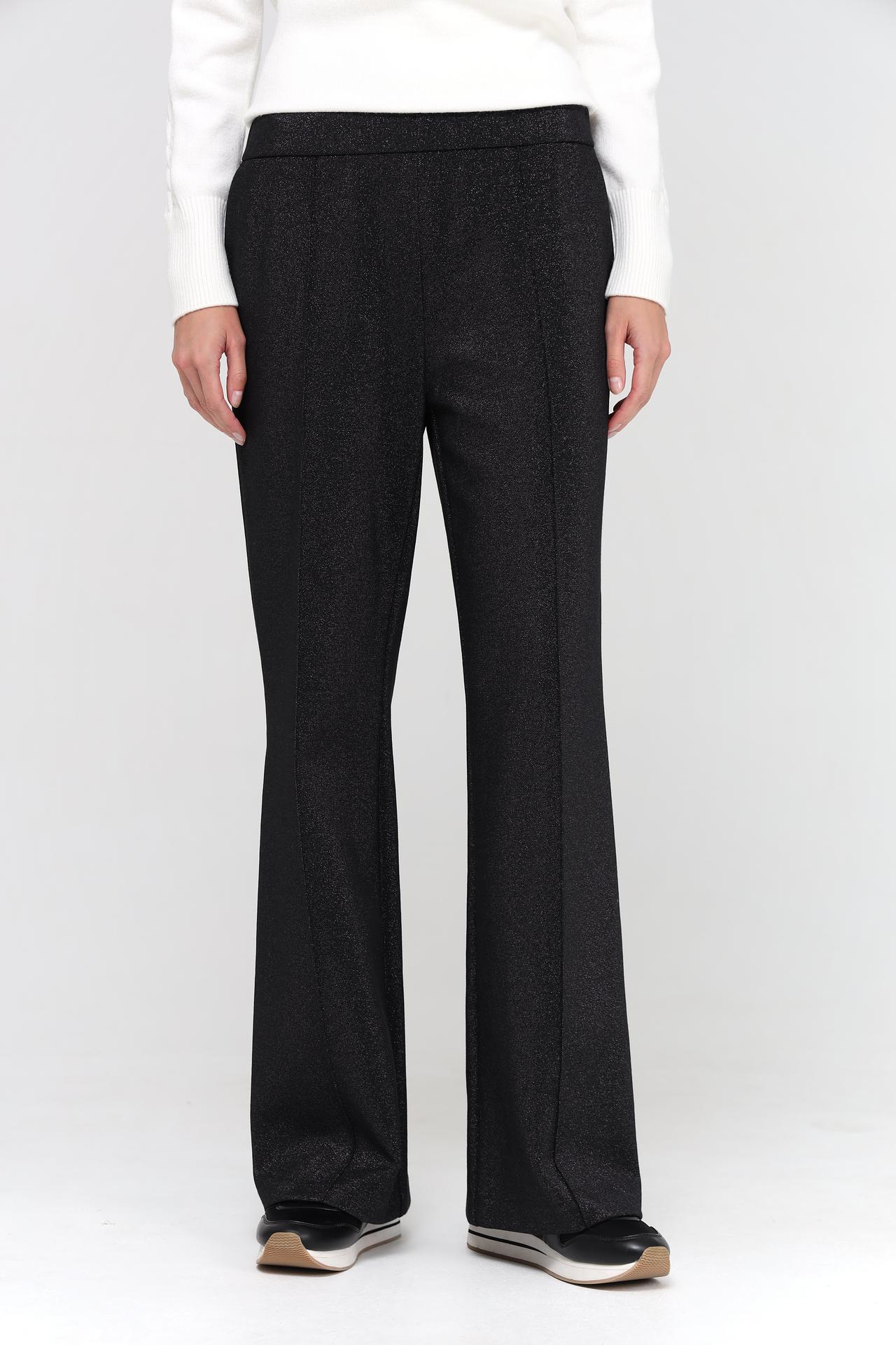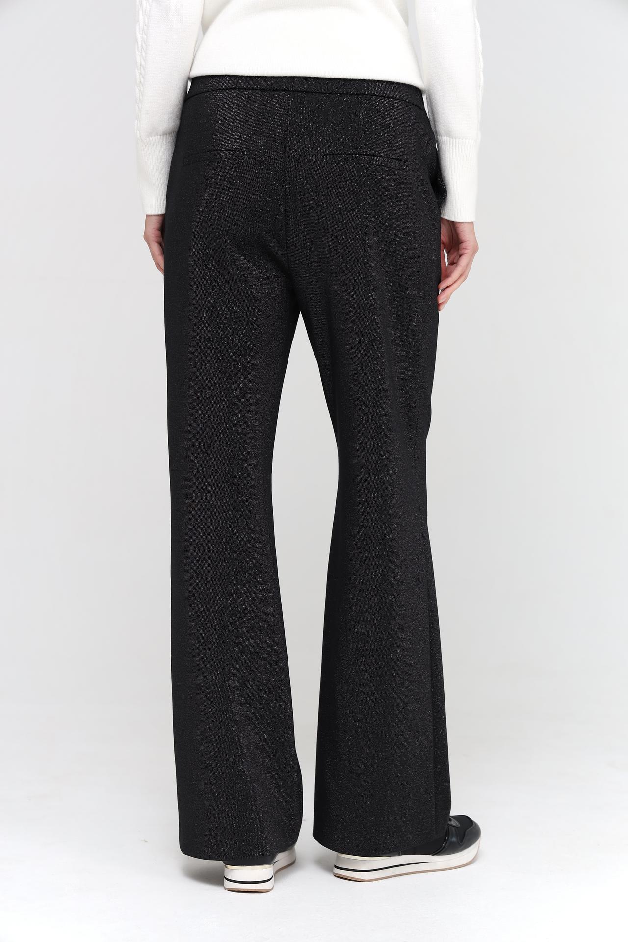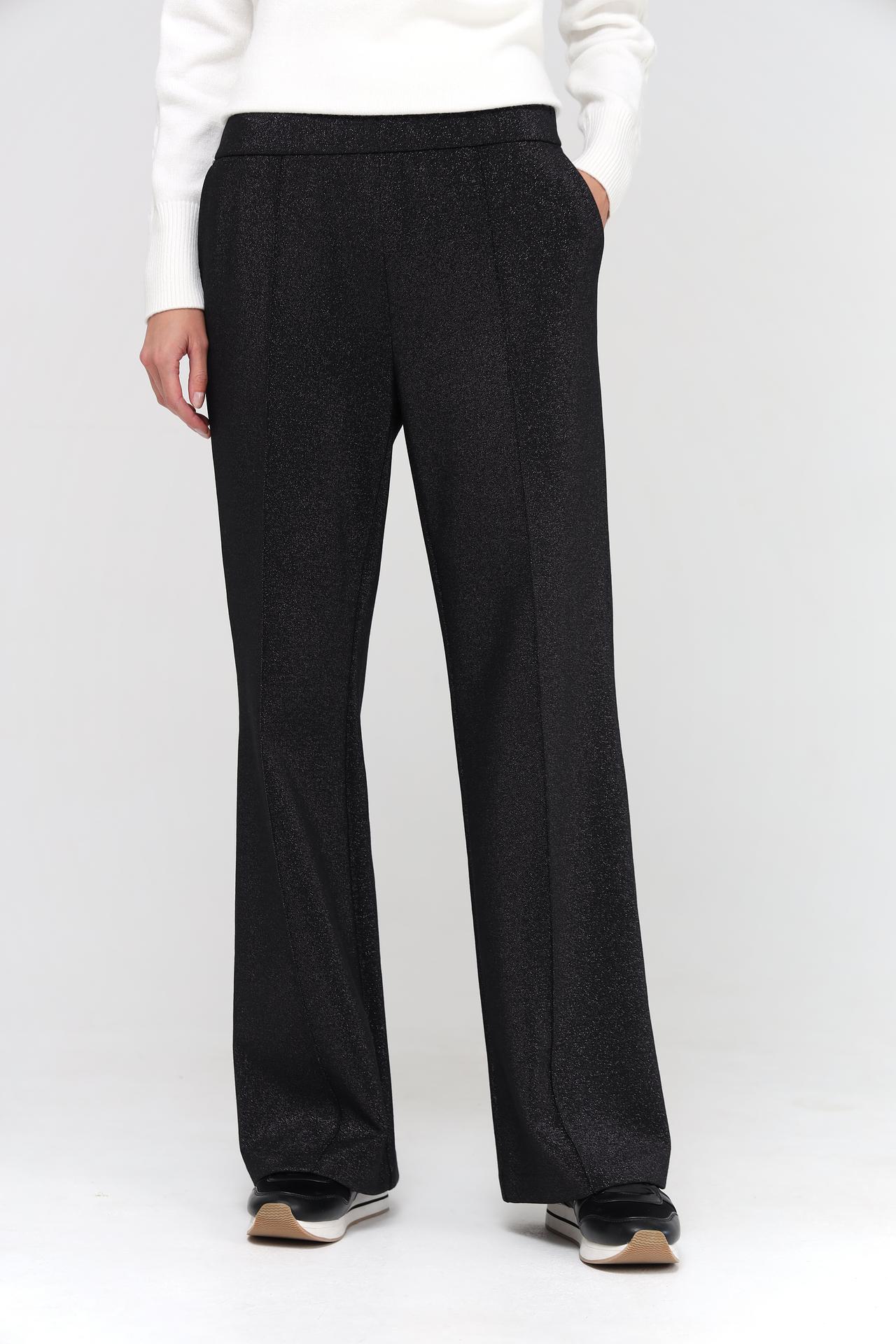 - Дизайн: Классический черный цвет с тонким мерцанием делает эти брюки универсальными для различных случаев. Минималистичный дизайн без лишних деталей акцентирует внимание на качестве материала и безупречном пошиве.
