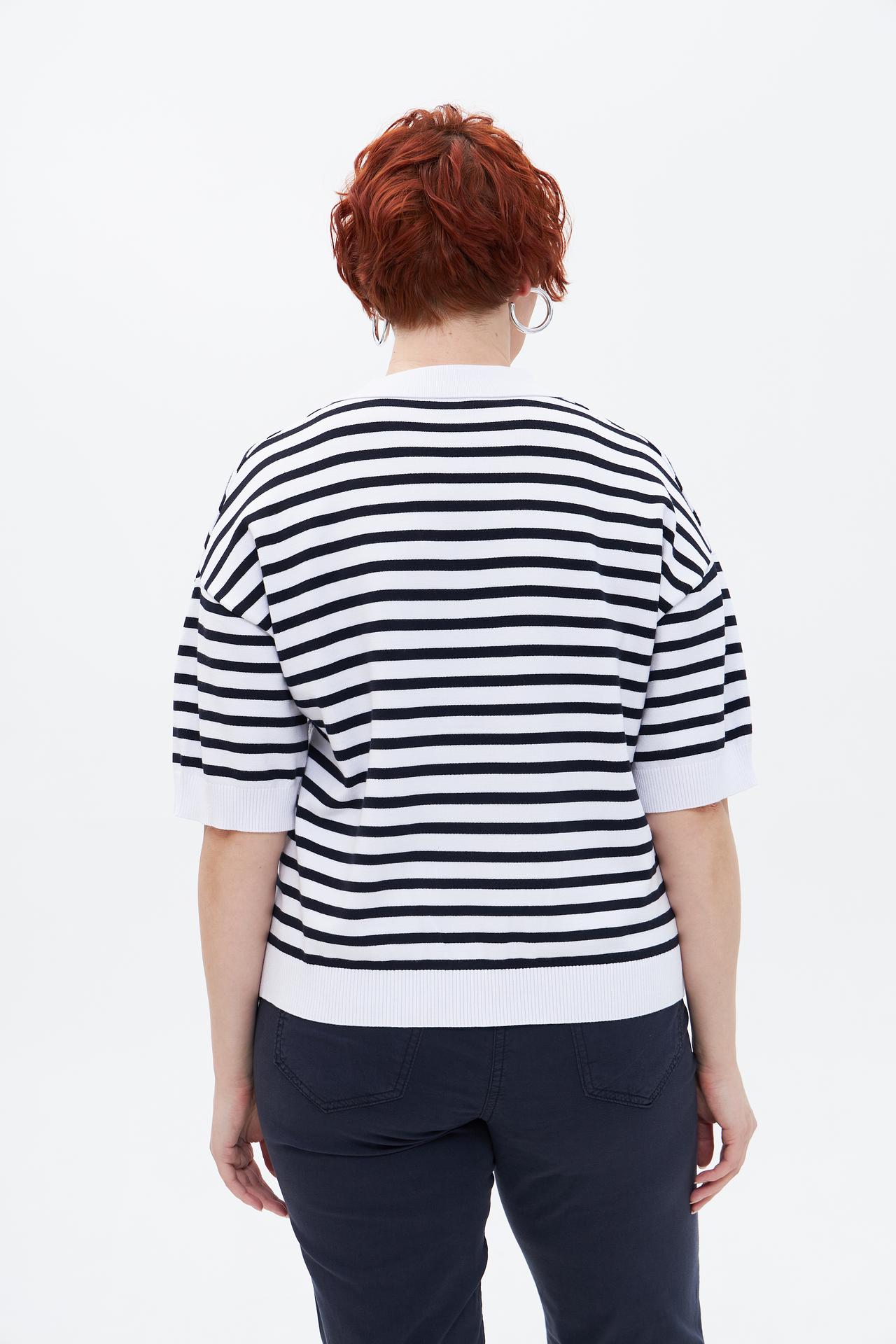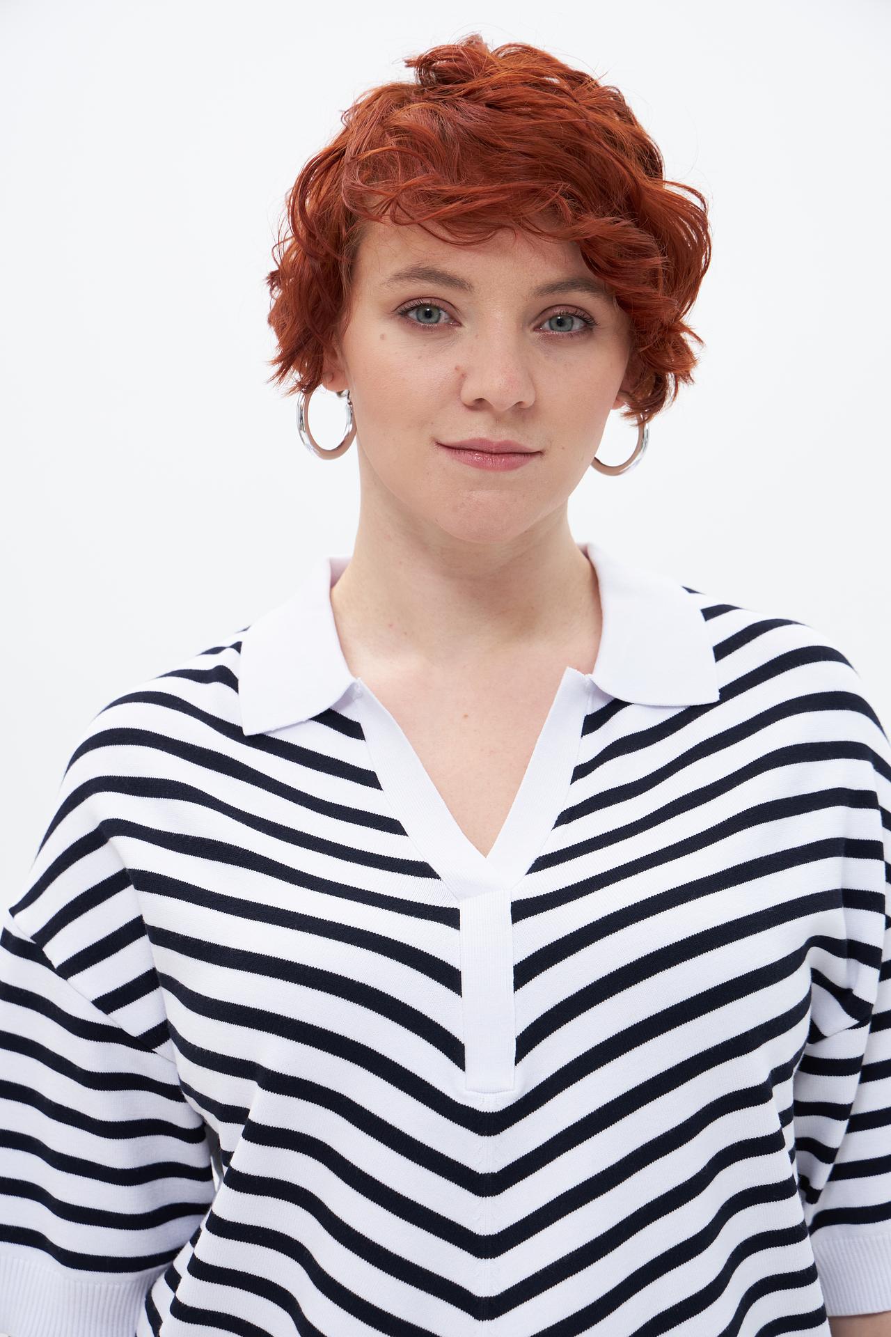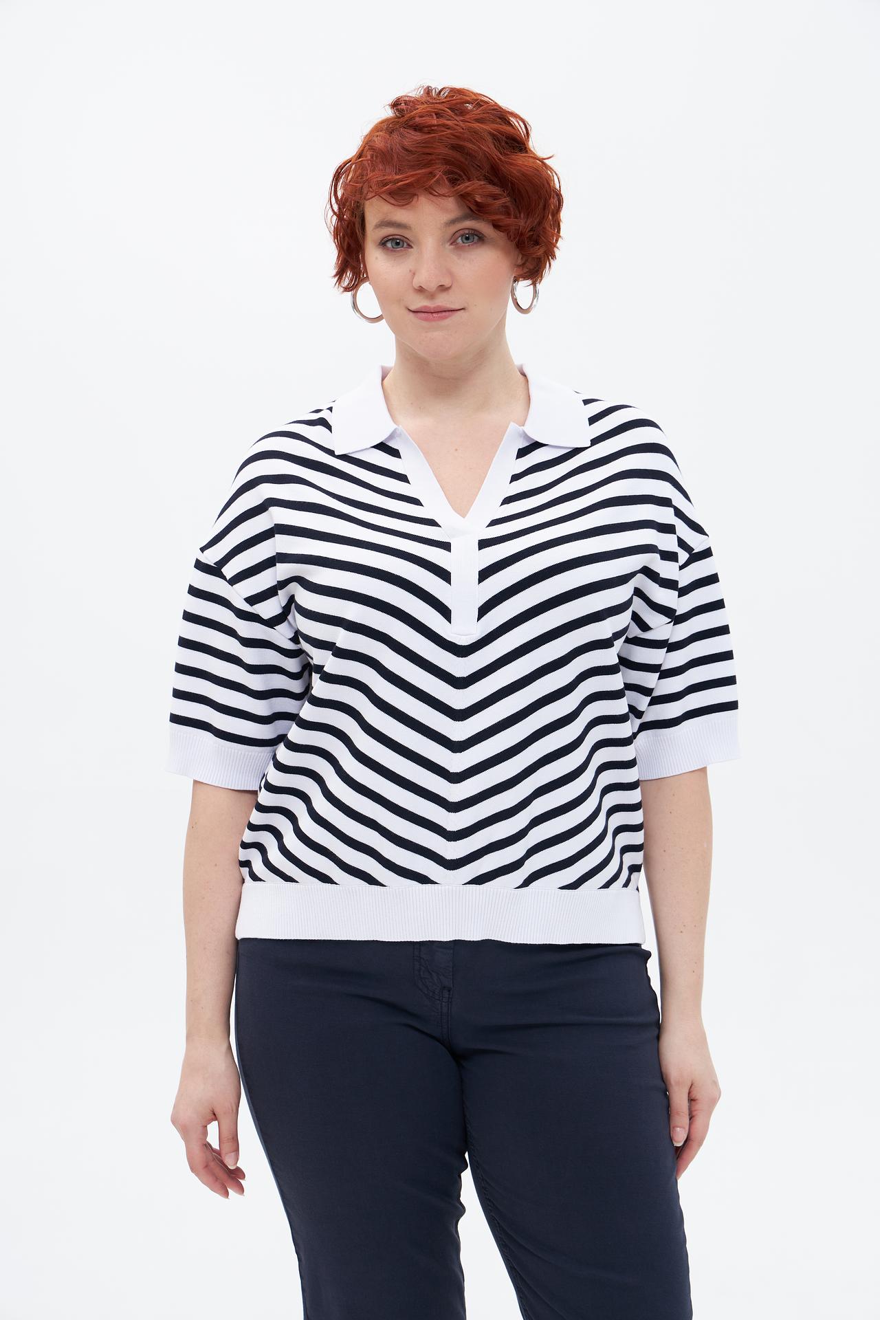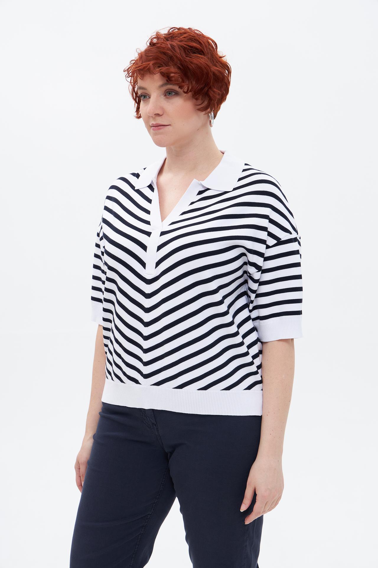 Пуловер Tuzzi белый с чёрными полосками и воротником поло