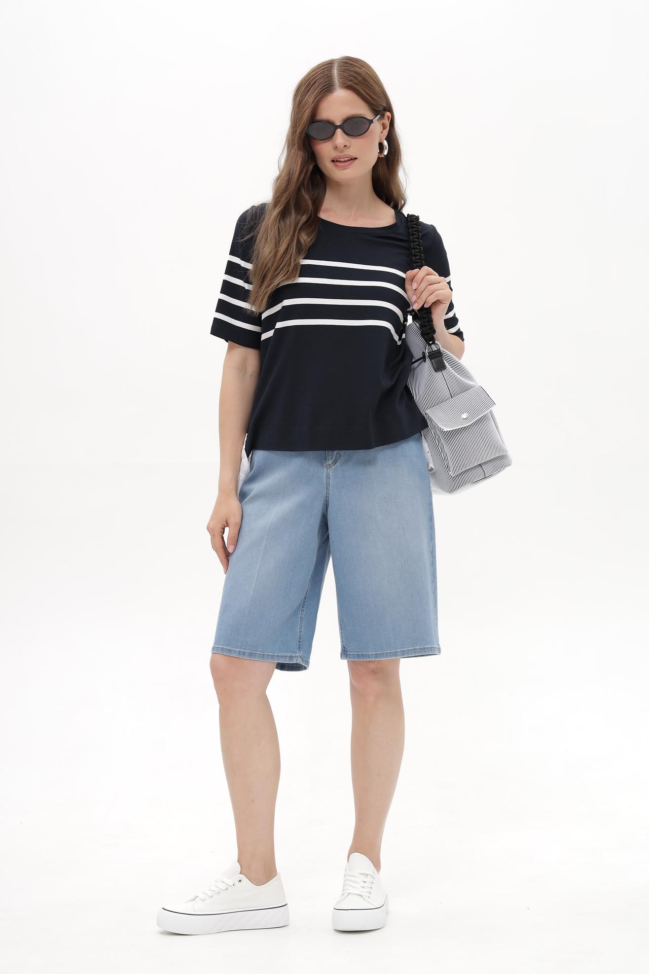 Футболка Tuzzi тёмно-синяя в полоску с кружевом