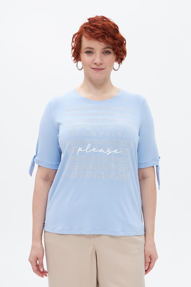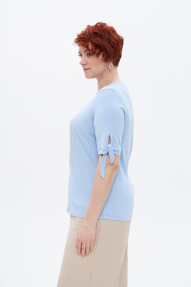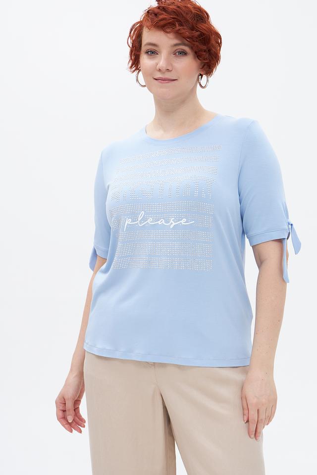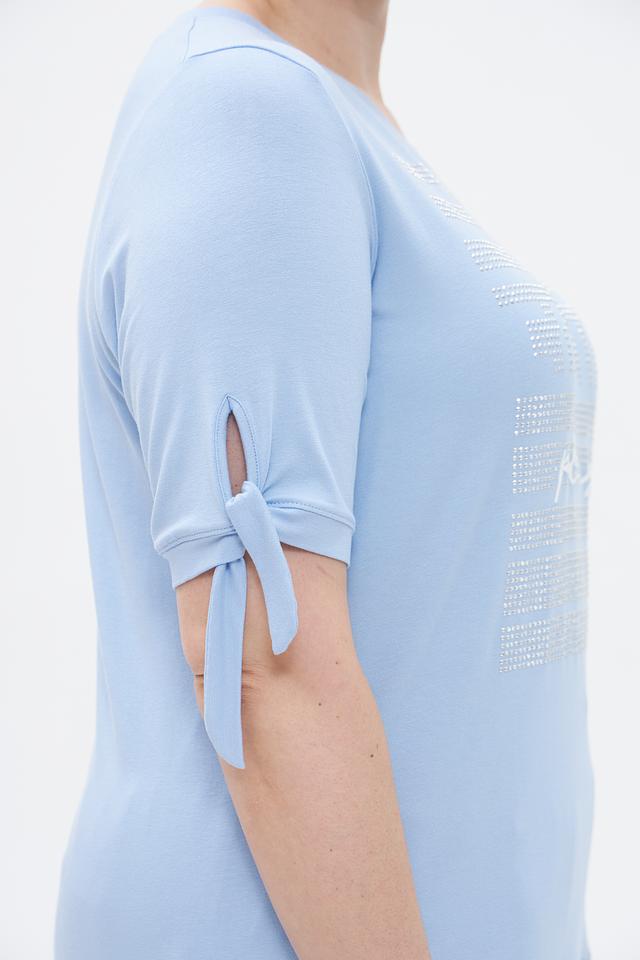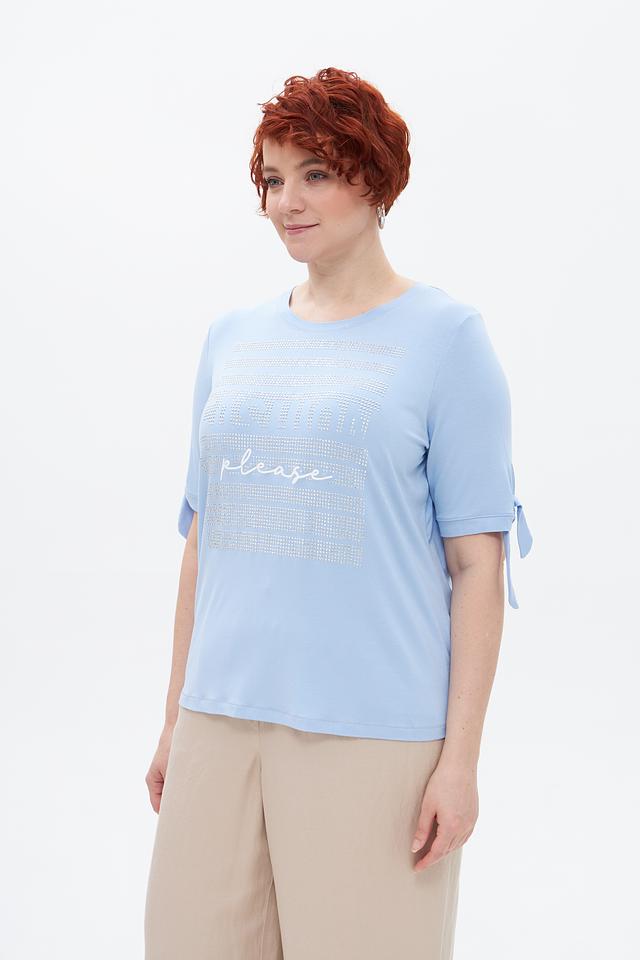 Голубая футболка Tuzzi с нежной вышивкой и декором в виде страз станет отличным дополнением к вашему гардеробу. Модель выполнена из мягкой вискозы с добавлением эластана, что обеспечивает комфорт и удобство в носке. Состав: вискоза 95%, эластан 5%
