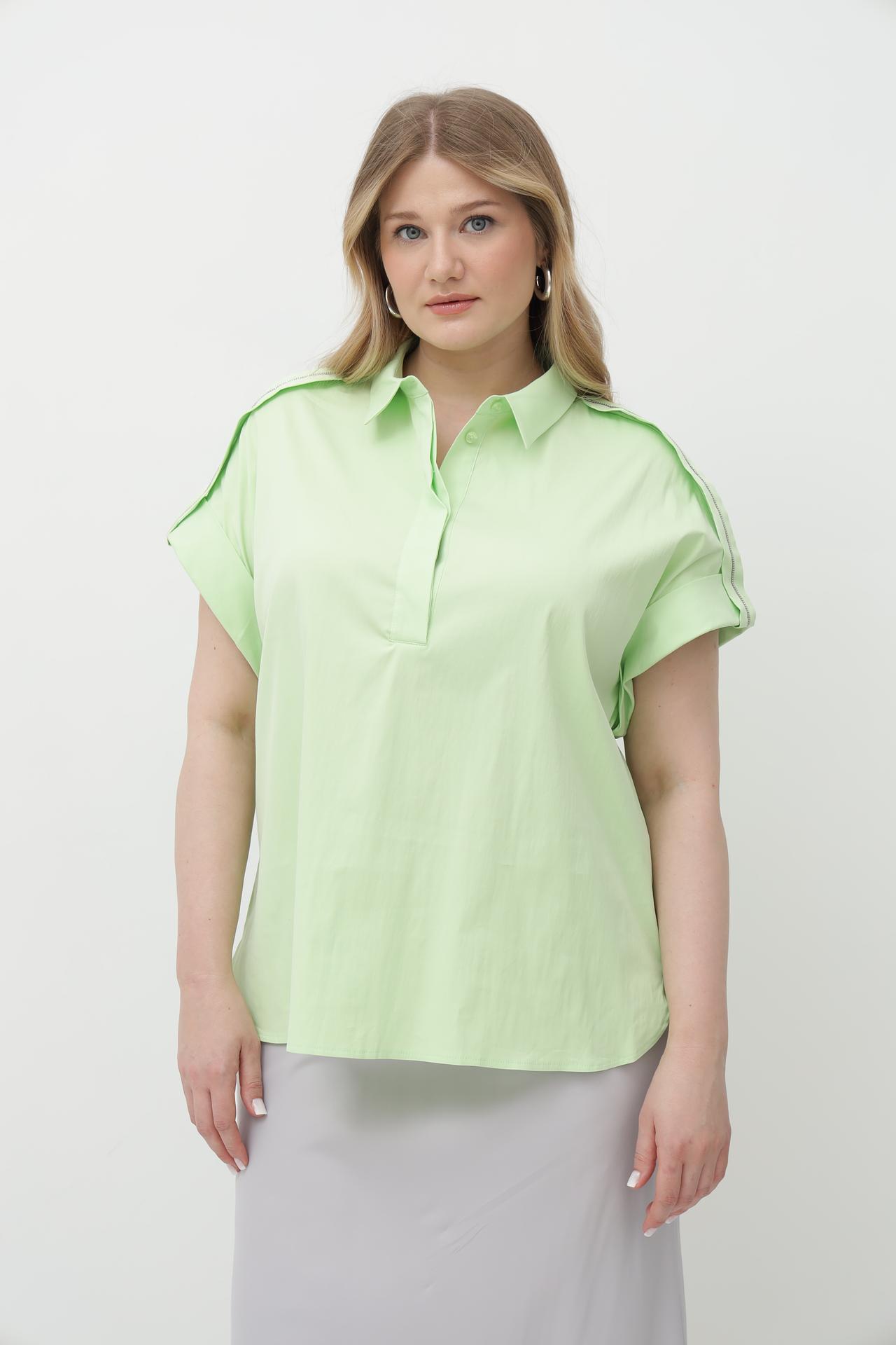 - Комфортный состав: Сочетание 76% хлопка, 21% полиамида и 3% эластана делает блузу дышащей, приятной к телу и износостойкой. Материал не мнется сильно и сохраняет форму после стирки.
