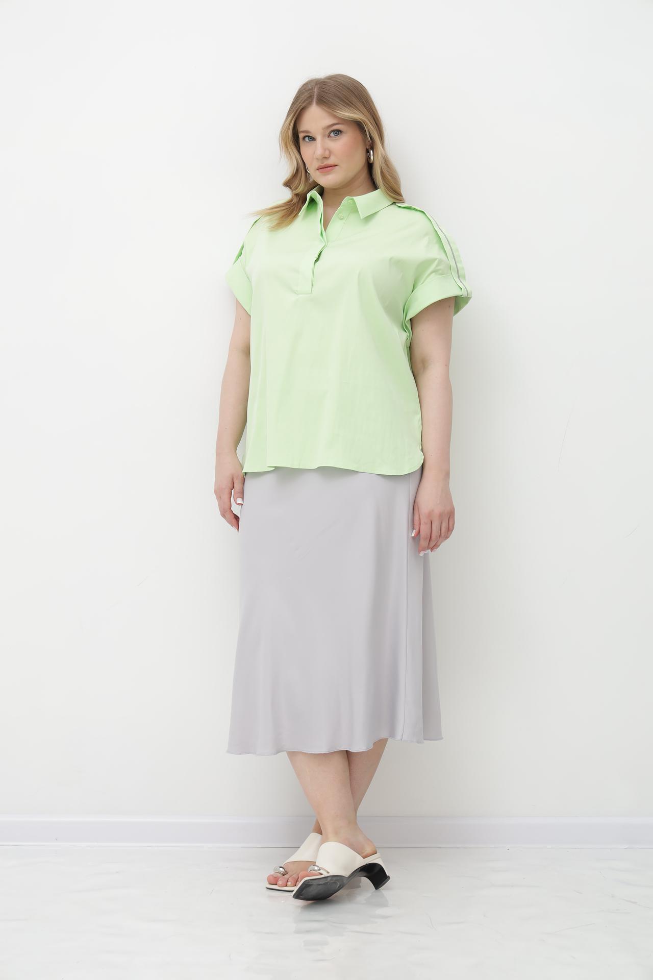 - Свободный крой: Прямой силуэт и короткие широкие рукава гарантируют непринужденную посадку, не сковывающую движений. Закругленный подол позволяет носить блузу как навыпуск, так и заправленной.