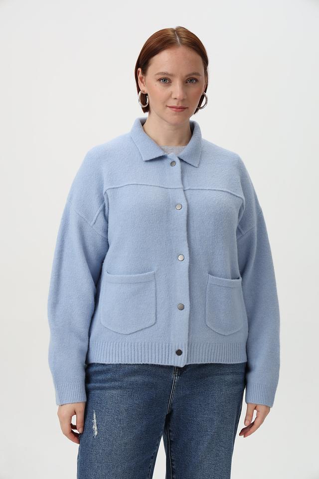 Голубой жакет Tuzzi из мягкой пряжи. Модель выполнена с застежкой на пуговицы и накладными карманами. Состав: шерсть, полиакрил, полиамид, полиэстер, эластан. Состав: полиакрил 68%, полиэстер 12%, полиамид 11%, шерсть 6%, эластан 3%