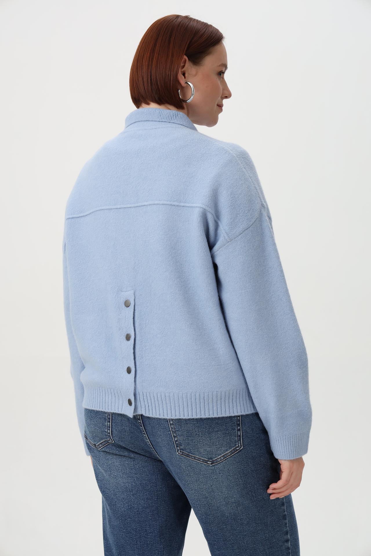 - Дизайн: Современный жакет прямого кроя с отложным воротником и застежкой на пуговицы. Декоративные швы и накладные карманы придают изделию особый шарм. Оригинальная деталь в виде пуговиц на спине добавляет изюминку.