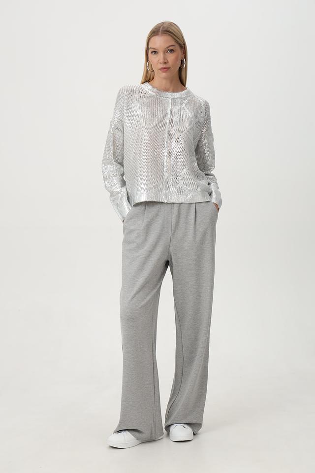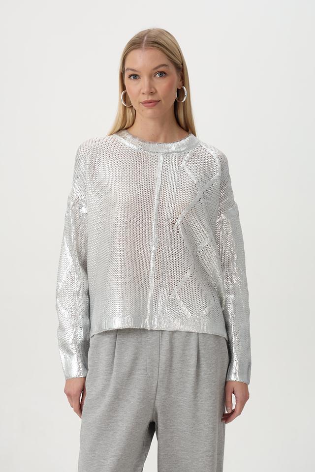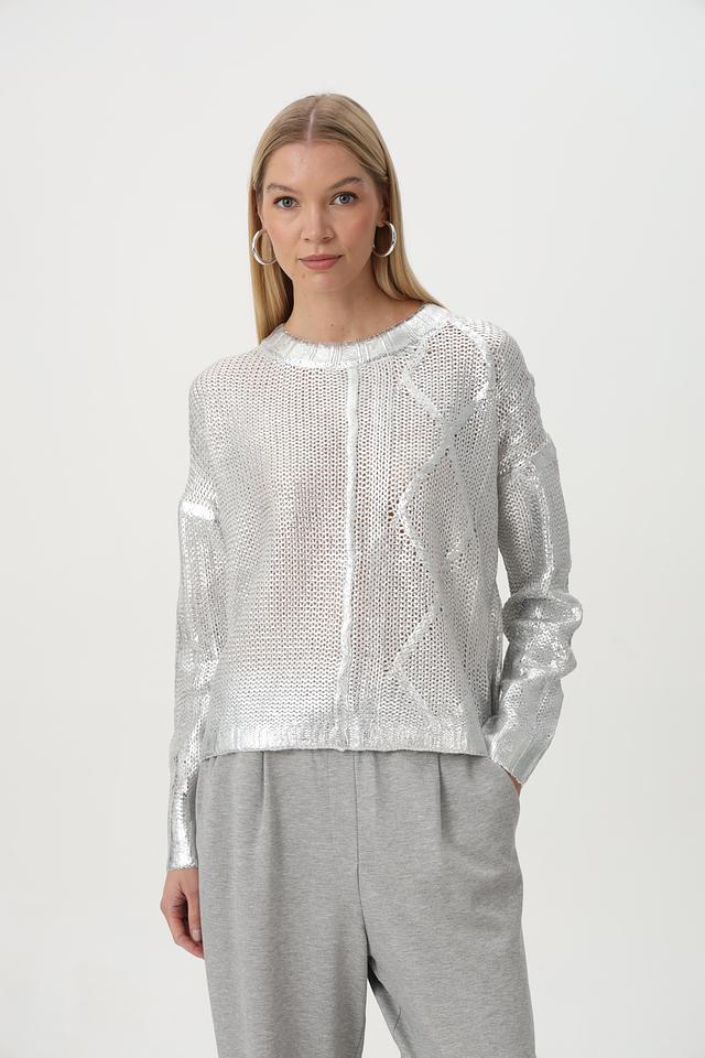 Пуловер Tuzzi серебристый с ажурным узором