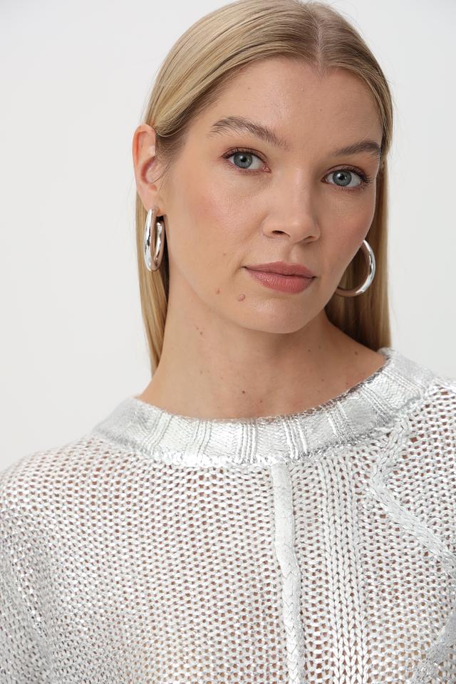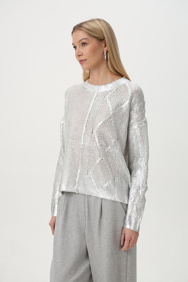 Стильный пуловер Tuzzi серебристого цвета с ажурным узором станет ярким акцентом вашего образа. Изготовлен из полиакрила, приятного на ощупь. Идеальный выбор для создания модных и комфортных образов. Состав: полиакрил 100%