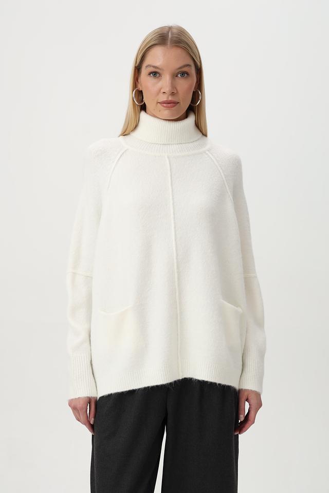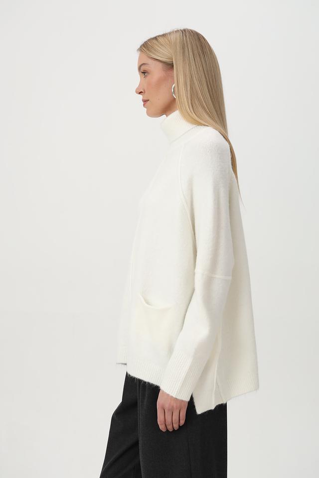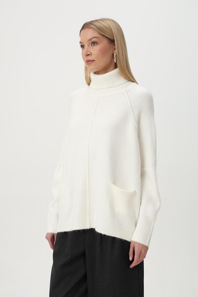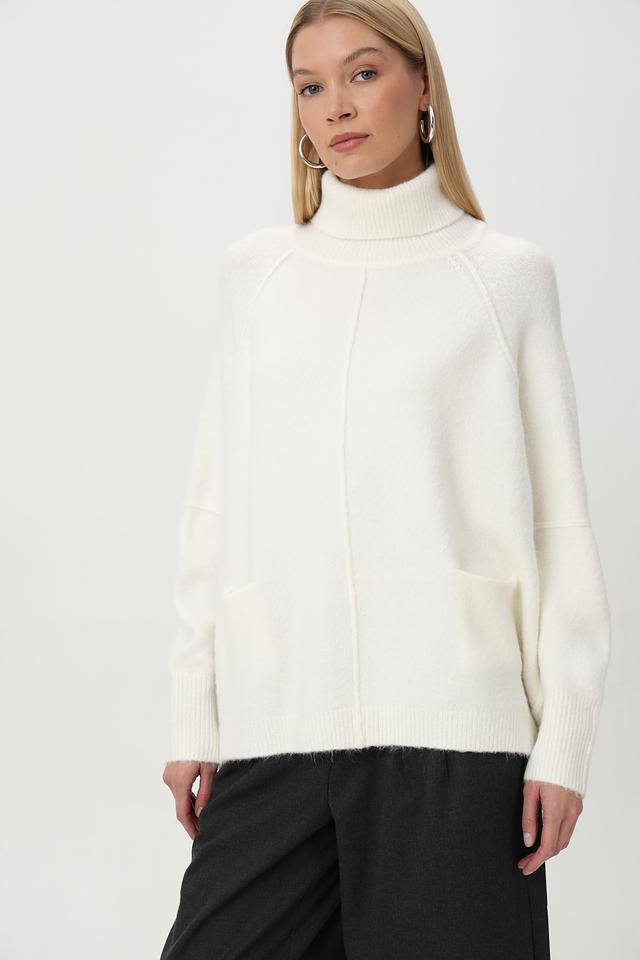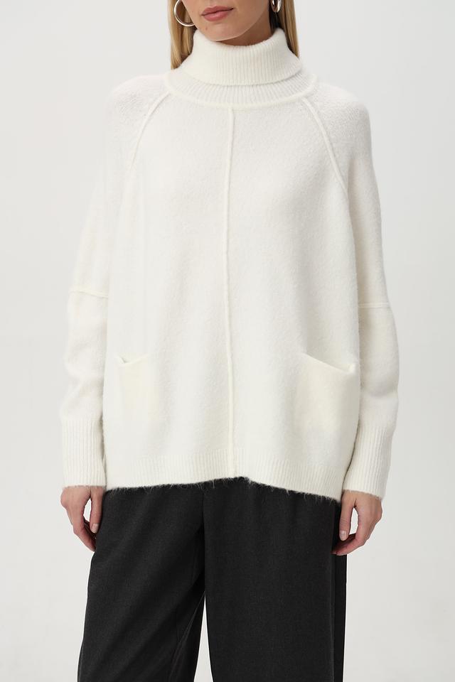 Белый пуловер Tuzzi свободного кроя с высоким воротником и карманами. Изготовлен из мягкой шерсти с добавлением полиэстера и других материалов для комфорта и долговечности. Состав: полиакрил 68%, полиэстер 12%, полиамид 11%, шерсть 6%, эластан 3%