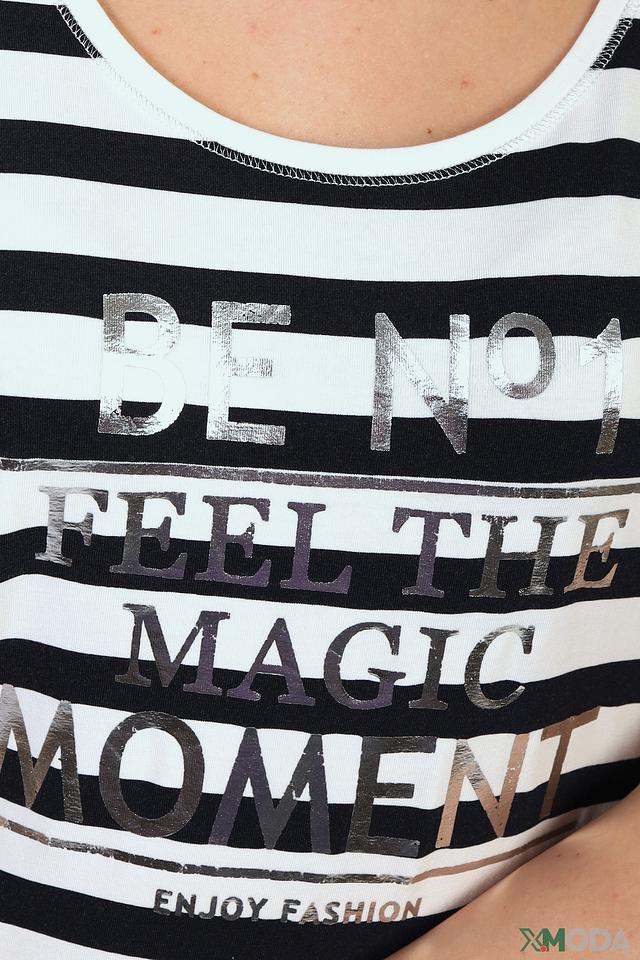 Эта стильная футболка от Tuzzi станет отличным дополнением к вашему гардеробу. Классический чёрно-белый полосатый дизайн разбавлен эффектным принтом с надписями, что делает её яркой и запоминающейся.
