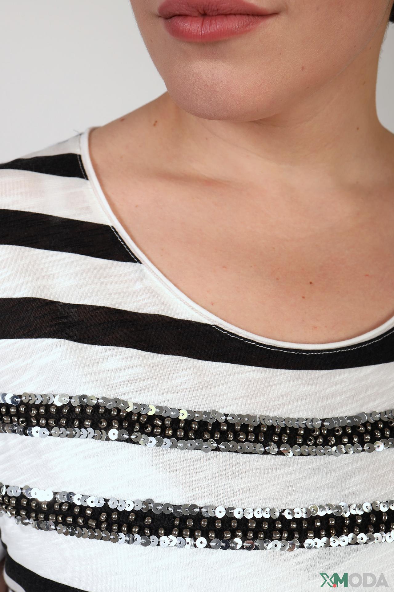 Футболка Tuzzi черно-белая с полосками и пайетками