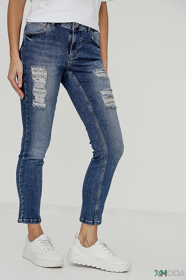 Джинсы Tuzzi синего цвета с эффектным декором из рваных элементов и аппликаций. Модель выполнена из качественного хлопка с добавлением эластана для комфортной посадки и свободы движений. Состав: хлопок 98%, эластан 2%