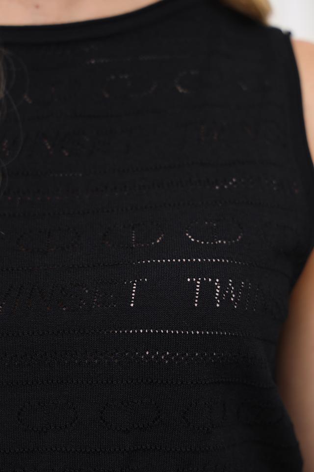 Чёрный топ Twin Set — это стильная и удобная модель без рукавов, выполненная из ажурного трикотажа. Топ имеет круглый вырез горловины и короткий крой, идеально подходящий для создания модных летних образов. Состав: вискоза 62%, полиамид 38%