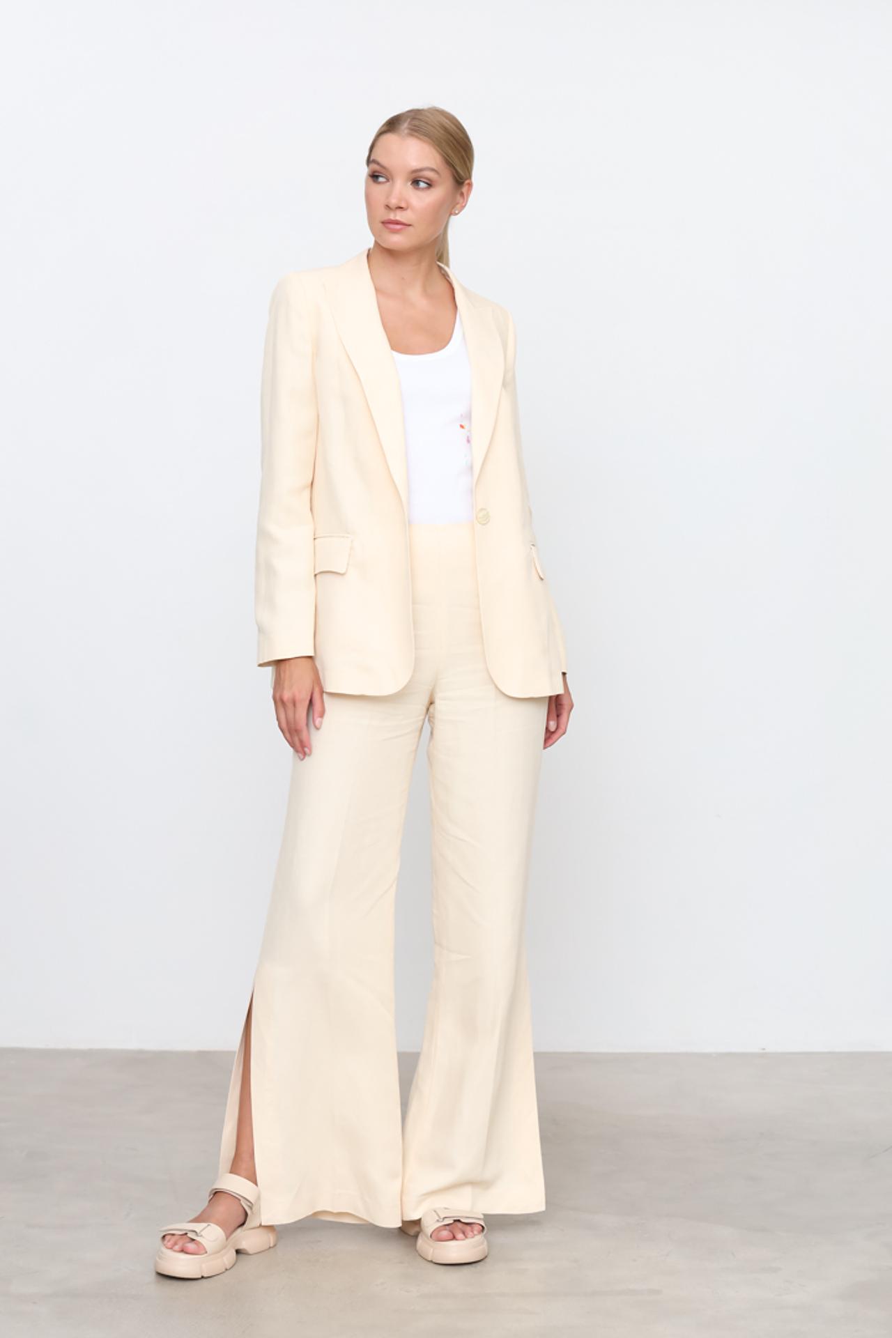 - Универсальность стиля: Эти бежевые брюки легко комбинируются как с классическими жакетами, так и с легкими блузами, позволяя создавать разнообразные модные образы.