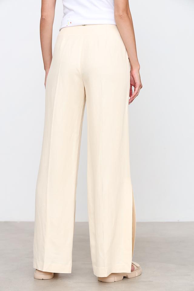 Изготовленные из сочетания вискозы (83%) и льна (17%), брюки приятны к телу, хорошо драпируются и обеспечивают комфорт в течение всего дня. Подкладка выполнена из ацетата (68%) и полиэстера (32%).