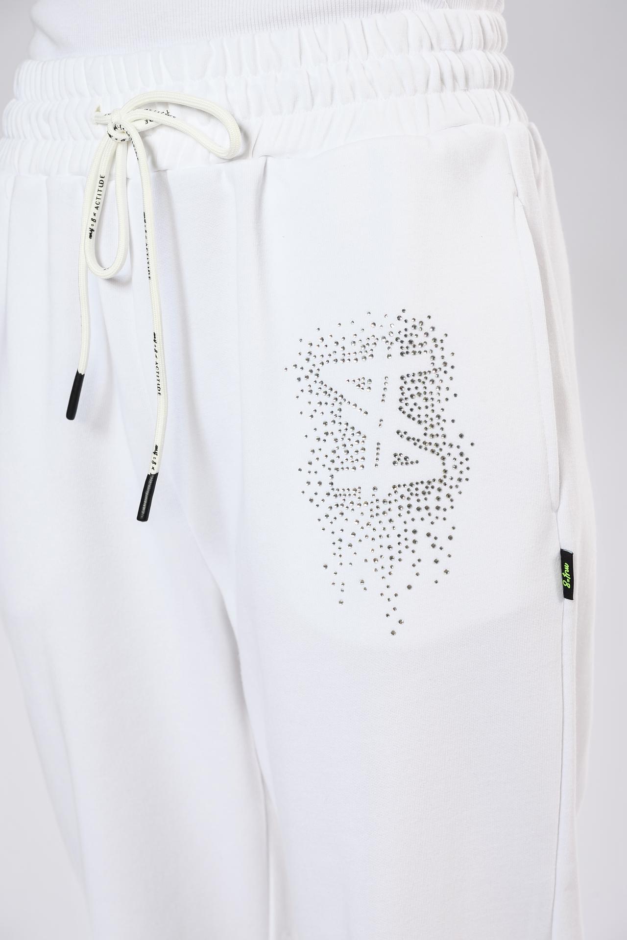 - Декор: Брюки украшены стильным рисунком из страз, что придает им неповторимый шарм и делает их отличным выбором для создания ярких образов.