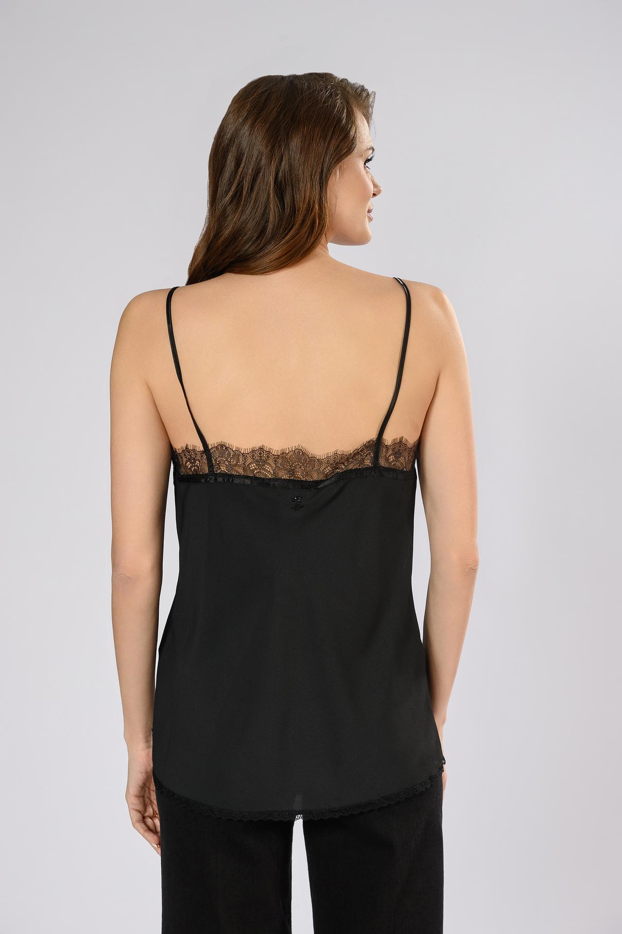 - Дизайн: V-образный вырез с декоративной кружевной отделкой, тонкие регулируемые бретели.