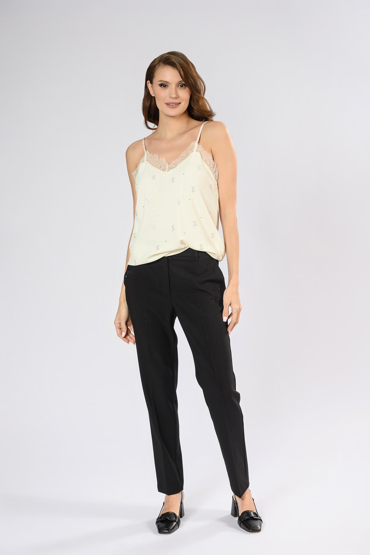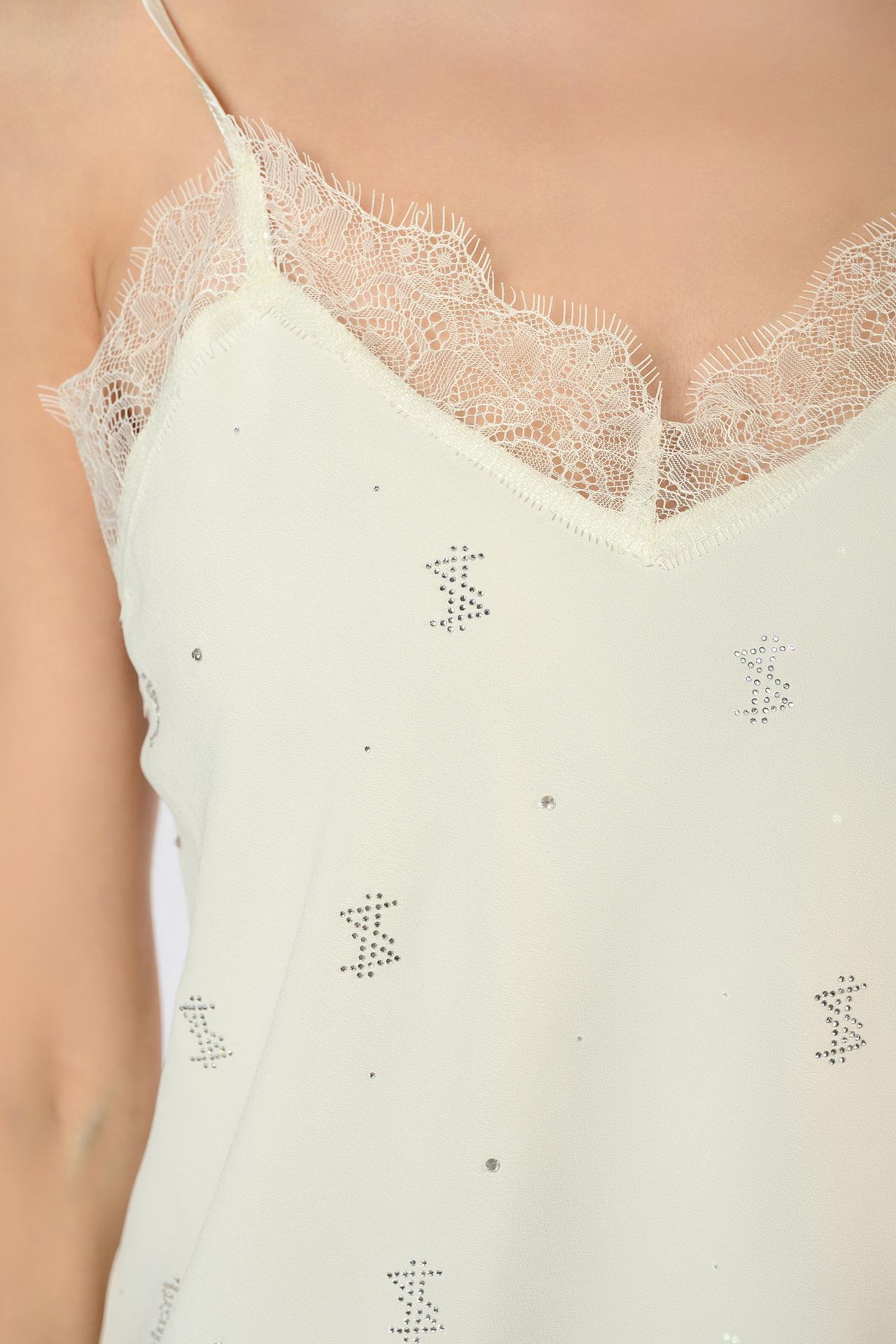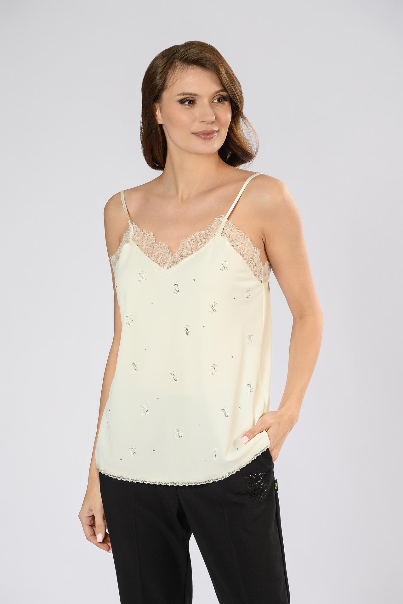 Благодаря своему дизайну и универсальному цвету, топ легко сочетается с различными элементами гардероба, будь то юбка, брюки или джинсы. Кружевные детали и декор придают топу изысканность и шарм, делая его подходящим как для повседневной носки, так и для особых случаев.