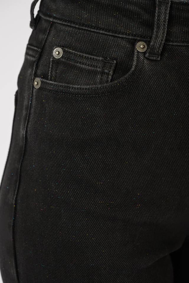 Особенностью данной модели является едва заметный глиттер, который добавляет образу изысканности и привлекает внимание. Джинсы оснащены классической застежкой на пуговицу и молнию, а также имеют функциональные карманы сзади и спереди. Состав: хлопок 67%, полиэстер 30%, эластан 2%, полиамид 1%.