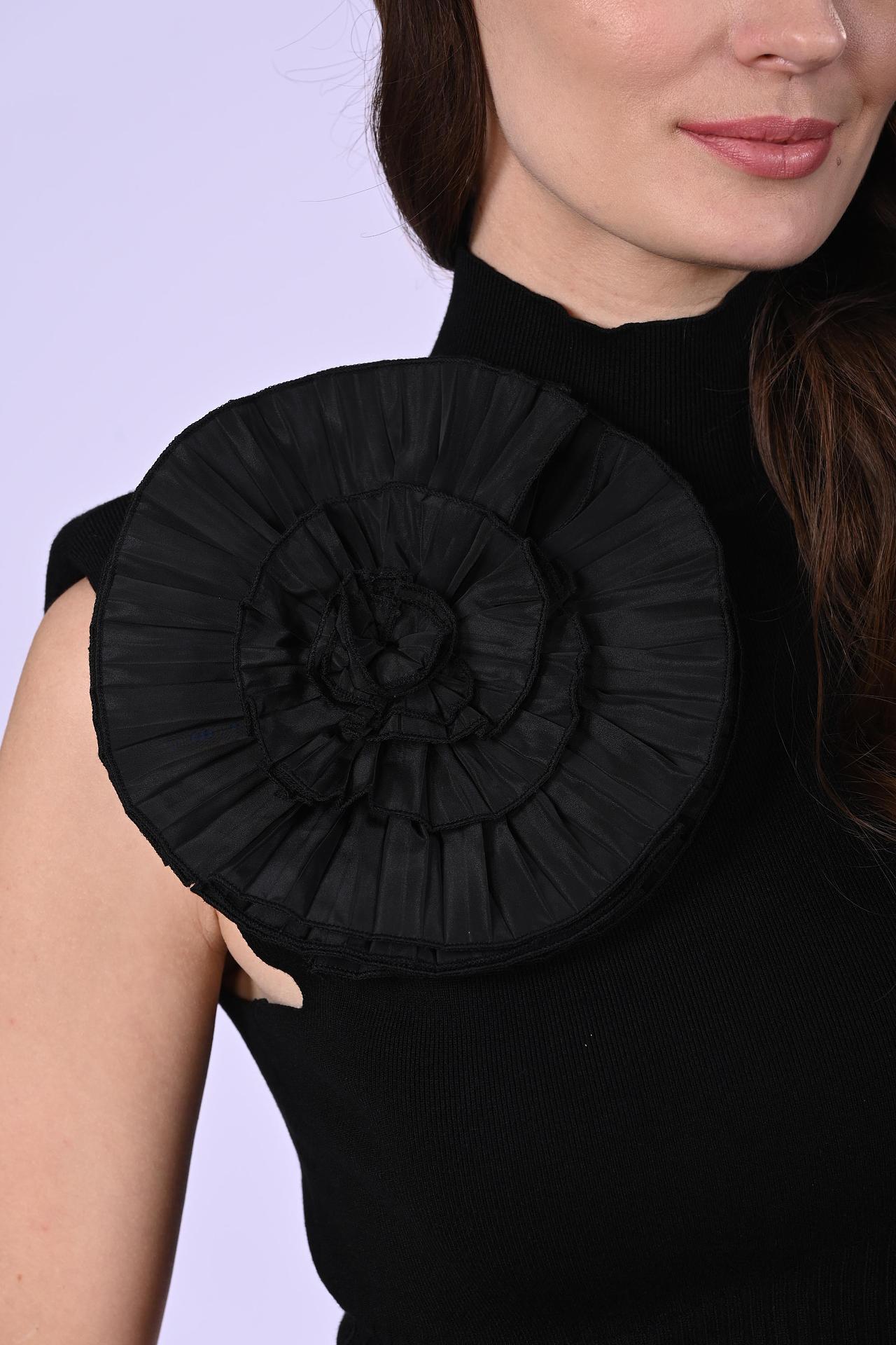 Элегантная черная водолазка без рукавов от Twin Set – идеальный выбор для создания стильных образов. Модель с высоким воротником-гольф подчеркивает изящество шеи и придает образу особую утонченность. Декоративный элемент в виде объемного цветка на плече добавляет акцент и делает водолазку по-настоящему уникальной. Эта водолазка станет основой как для деловых, так и для повседневных нарядов, легко сочетаясь с брюками, юбками и жакетами.
