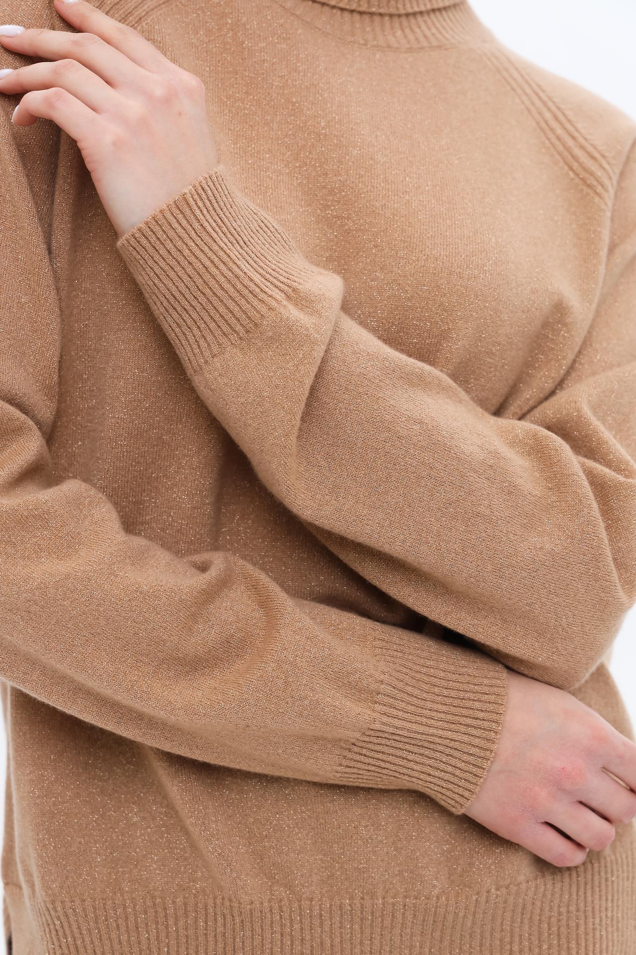 - Элегантный дизайн: Универсальный золотистый оттенок и классический крой с высоким воротом делают этот женский джемпер легко комбинируемым с различными элементами гардероба. Деликатное мерцание люрекса добавляет изысканности образу.