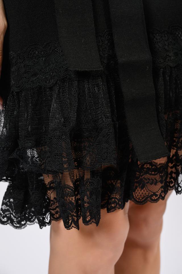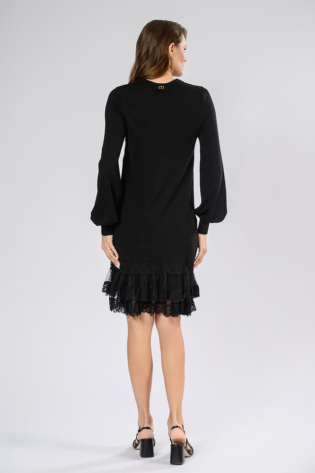 Элегантное короткое платье Twin Set черного цвета с изящной отделкой из кружева. Модель имеет длинные рукава и приталенный силуэт, подчеркивающий фигуру. Идеальный выбор для создания женственного образа. Состав: вискоза 55%, полиамид 45%