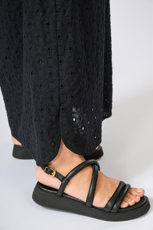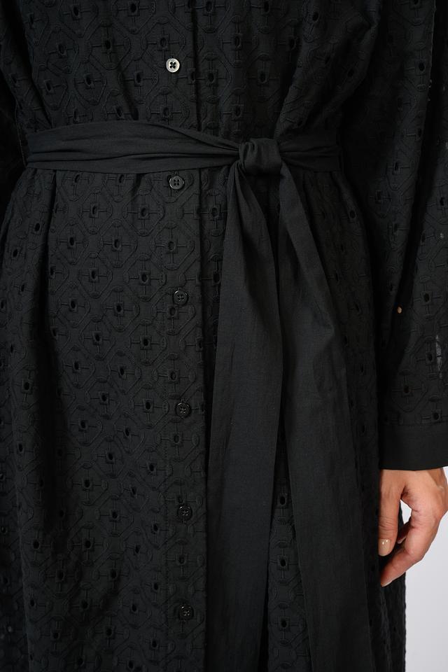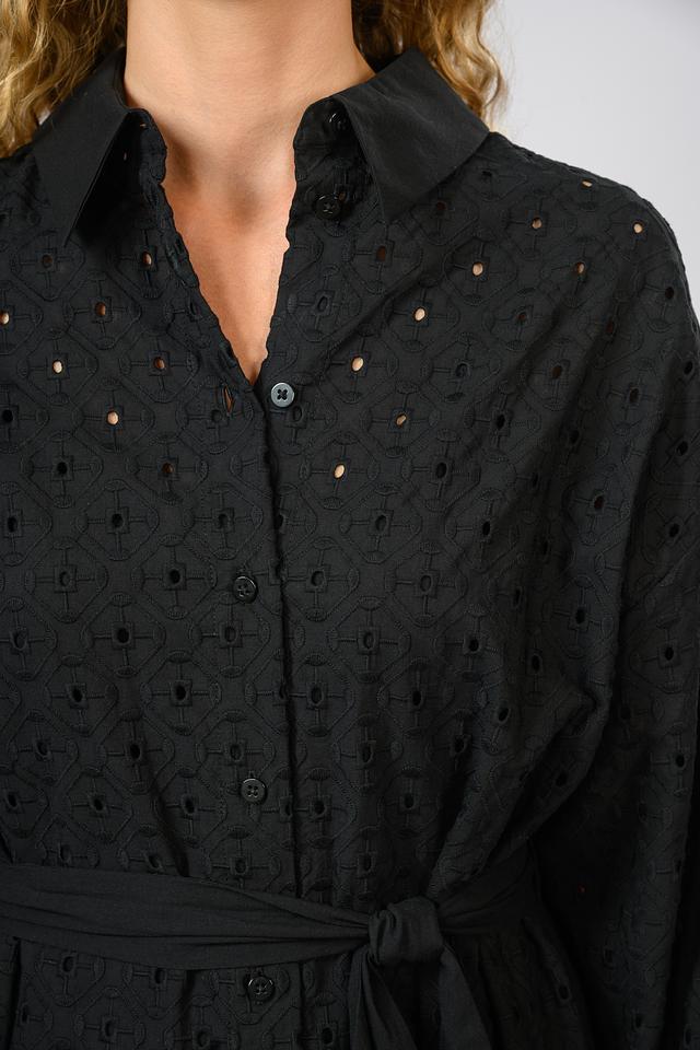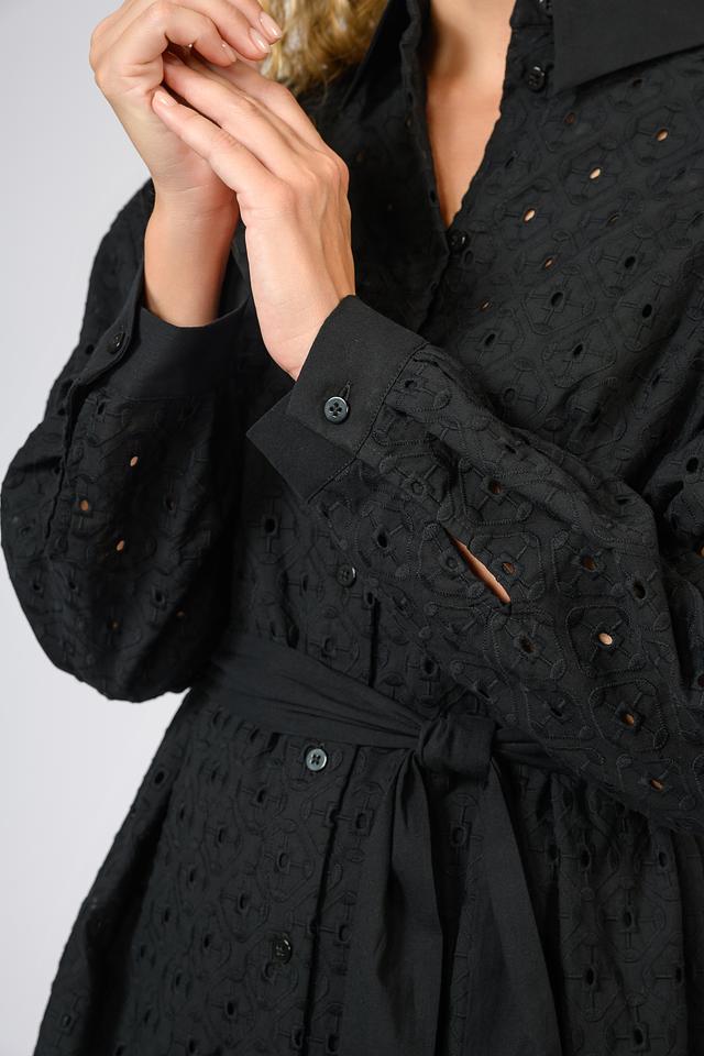Элегантное платье Twin Set Actitude чёрного цвета выполнено из 100% хлопка и украшено ажурным рисунком. Модель с длинным рукавом и поясом подчеркнет талию и создаст женственный силуэт. Состав: хлопок 100%