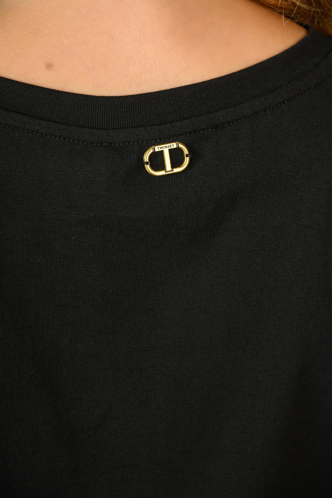 - Детали: Металлическая золотистая фурнитура с логотипом бренда Twin Set на спине, добавляющая изделию премиальности.