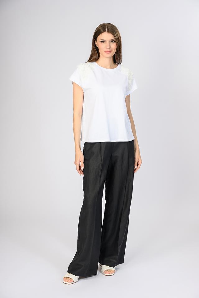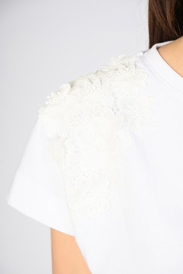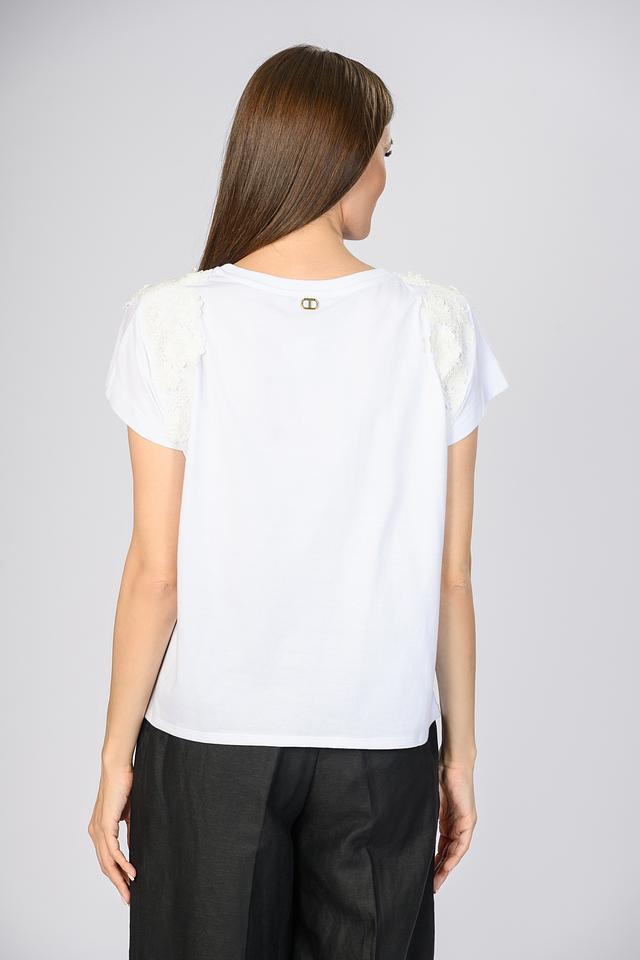 Белая блуза от Twin Set с изящным кружевным декором на плечах. Эта модель из 100% хлопка отличается комфортным кроем и стильным дизайном, идеально подходящим для создания повседневных образов. Состав: хлопок 100%