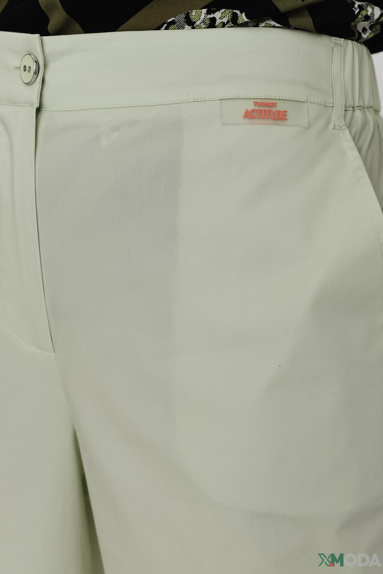 Брюки Twin Set светло-зеленые с розовым ярлыком Twinset Attitude