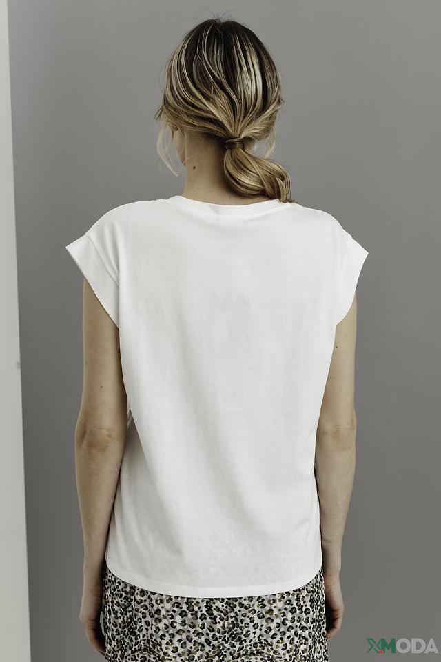 Футболка имеет прямой крой и короткие рукава с манжетами. Она идеально подойдет для повседневной носки, а также для создания модных образов в сочетании с джинсами, юбками или шортами.